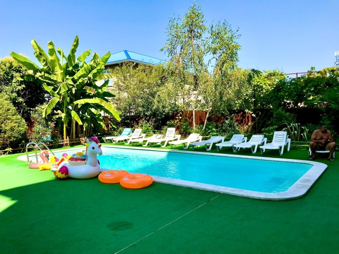 Готовьтесь к весёлому и насыщенному отдыху! На территории есть библиотека, площадка для пикника и площадка для барбекю. Здесь будем баловать себя водными процедурами: есть бассейн и открытый бассейн. Если планируете экскурсии, обратите внимание на экскурсионное бюро гостевого дома. Сотрудники гостевого дома по запросу организуют гостям трансфер.