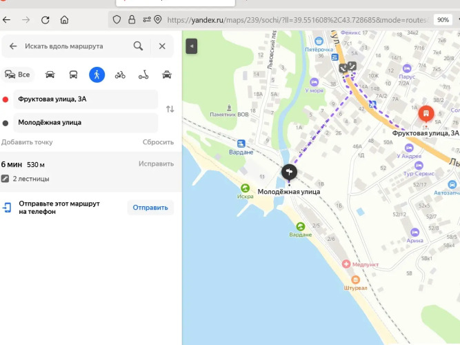адрес на карте Сочи, улица Фруктовая, д.1Б, с характеристиками