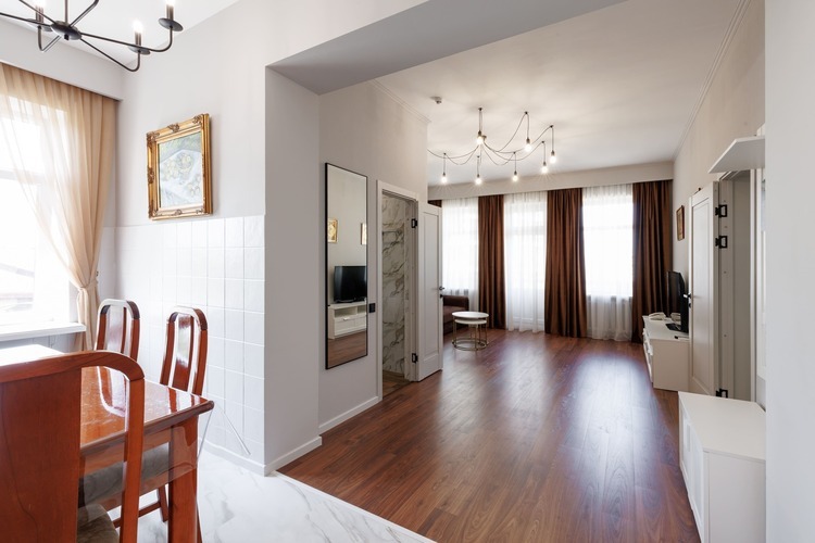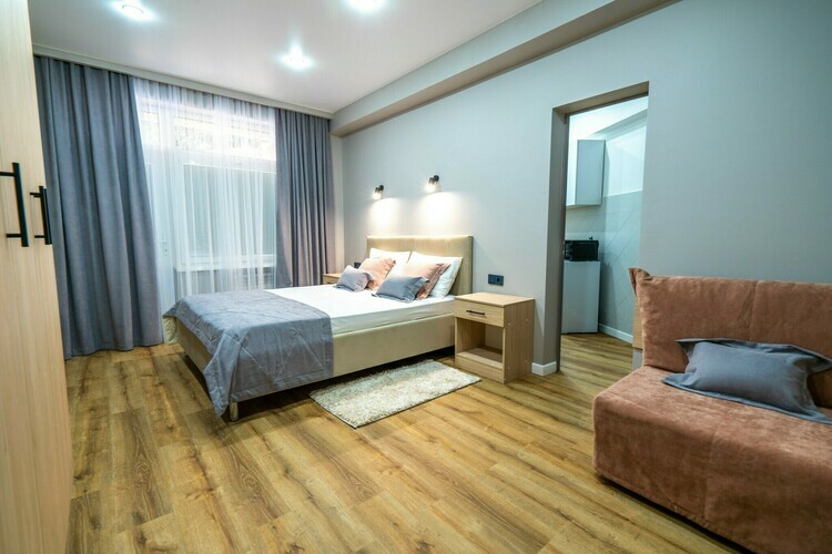 Комфортабельный номер 36 кв м с современным ремонтом и собственной кухней. Номер делюкс находится на цокольном этаже отеля. * Проживание детей до 4 лет бесплатно