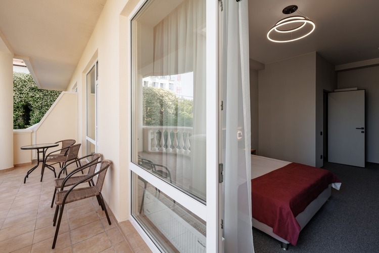 Стандартный светлый номер площадью от 17 кв.м с одной общей или двумя раздельными кроватями (при необходимости соединяем вместе), есть ковровое покрытие либо ламинат. В номерах есть телефон, кондиционер, телевизор, мини — холодильник. В санузле имеется душ, фен, комплект для индивидуального пользования, набор полотенец. Данные номера имеют вид на горы либо море. На балконах присутствует мебель для отдыха.