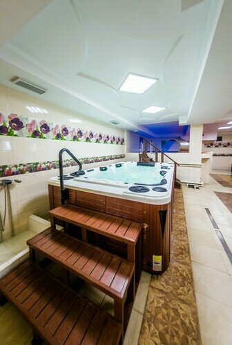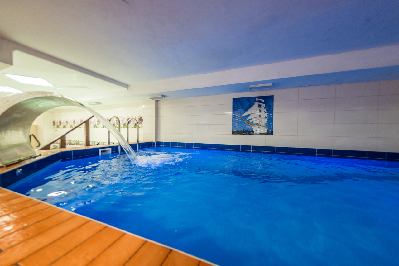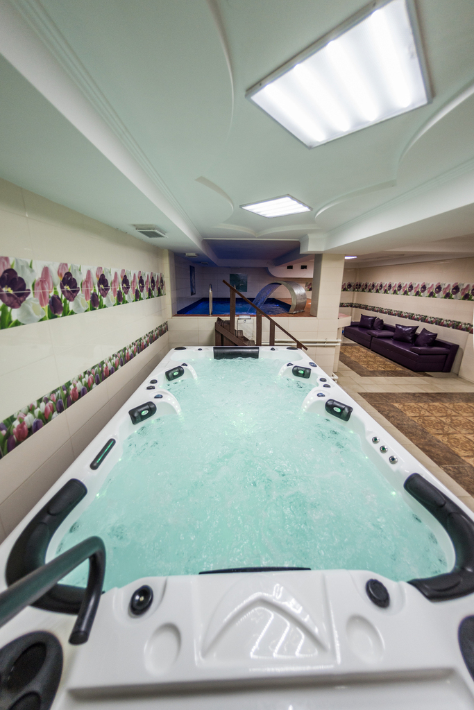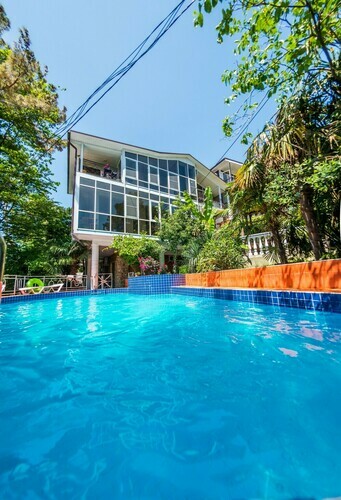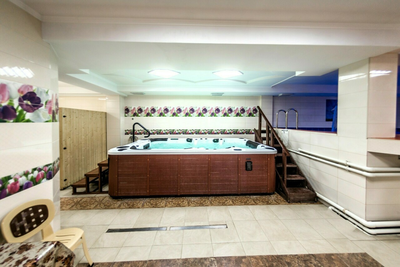 На территории гостевого дома находится подогреваемый бассейн с детским отделением, джакузи с гидромассажем и гейзером, детская площадка, спа-центр, хаммам, сауна, кафе.