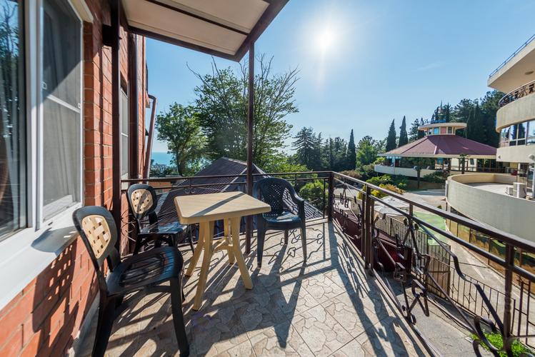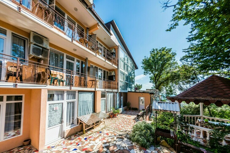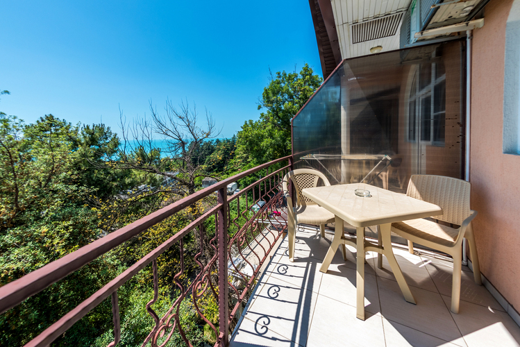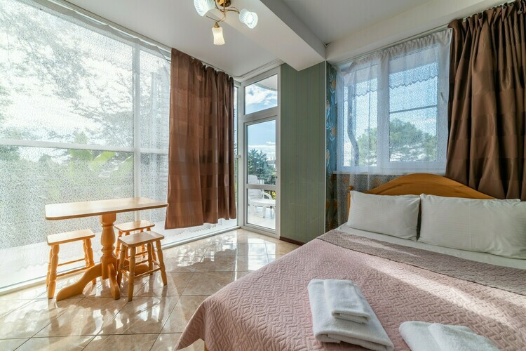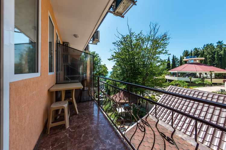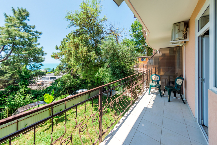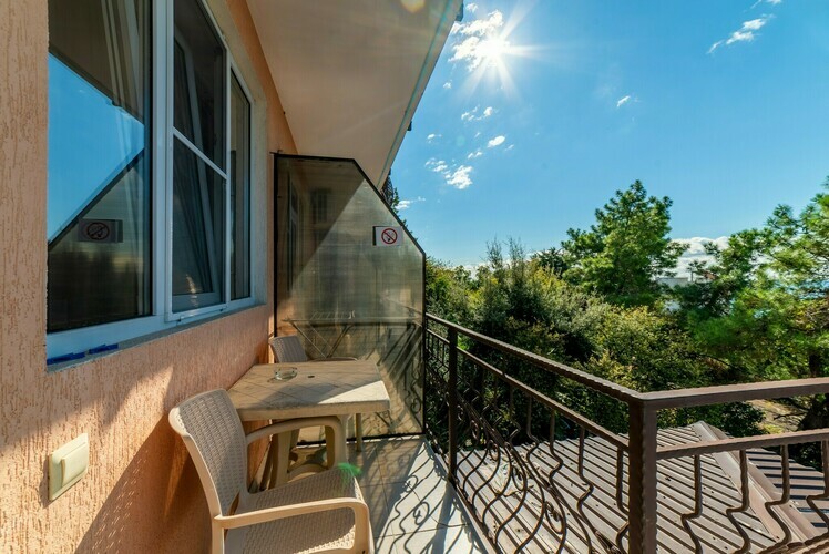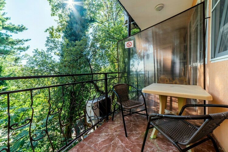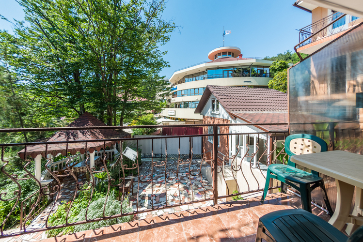 Гостевой дом отделен от транспортных магистралей лесным массивом с реликтовыми соснами и пробковым дубом. Для Ваших прогулок огромная парковая зона с экзотическими южными растениями.