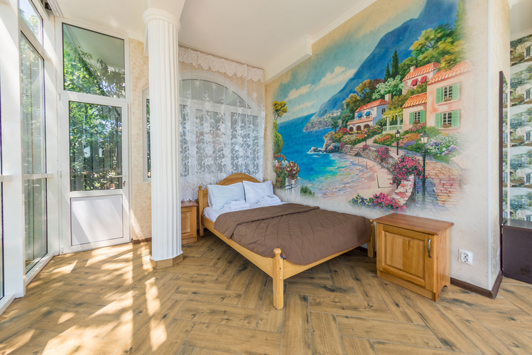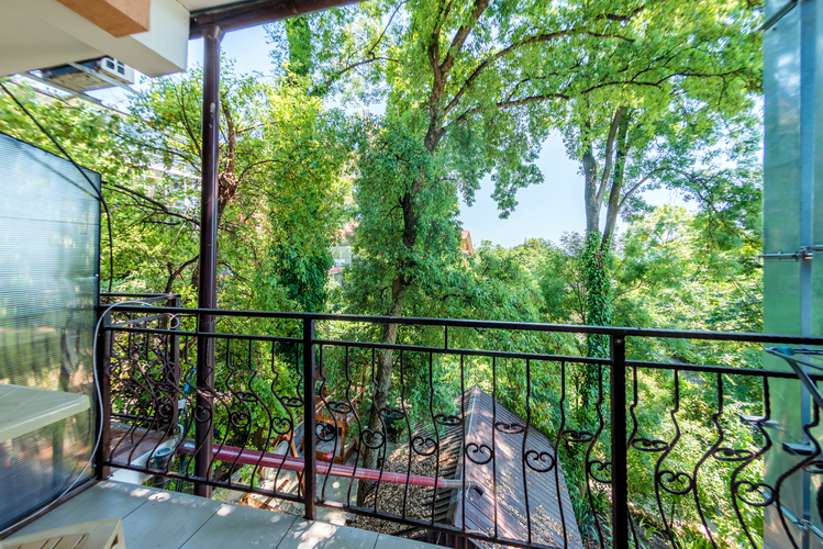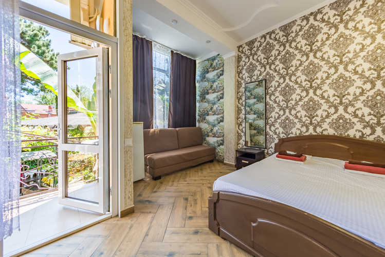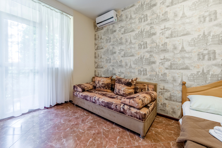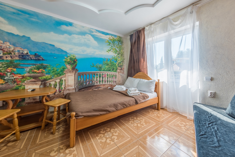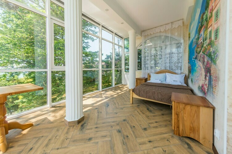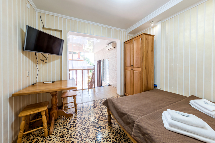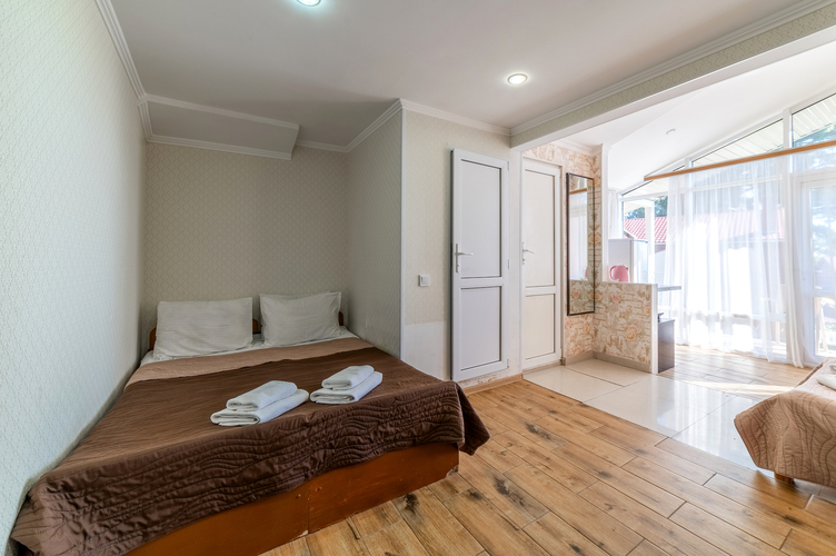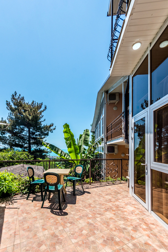 Гостевой дом отделен от транспортных магистралей лесным массивом с реликтовыми соснами и пробковым дубом. Для Ваших прогулок огромная парковая зона с экзотическими южными растениями.