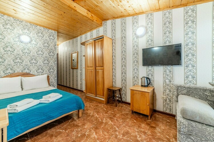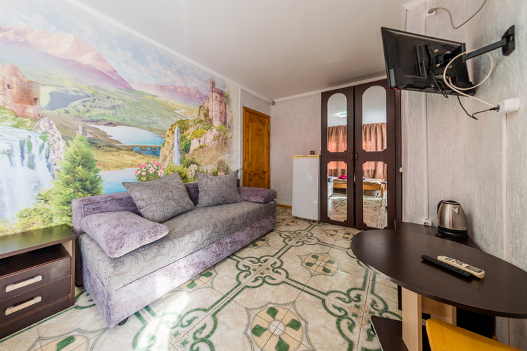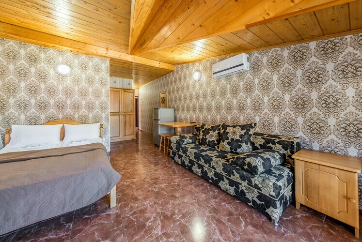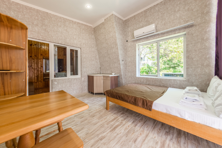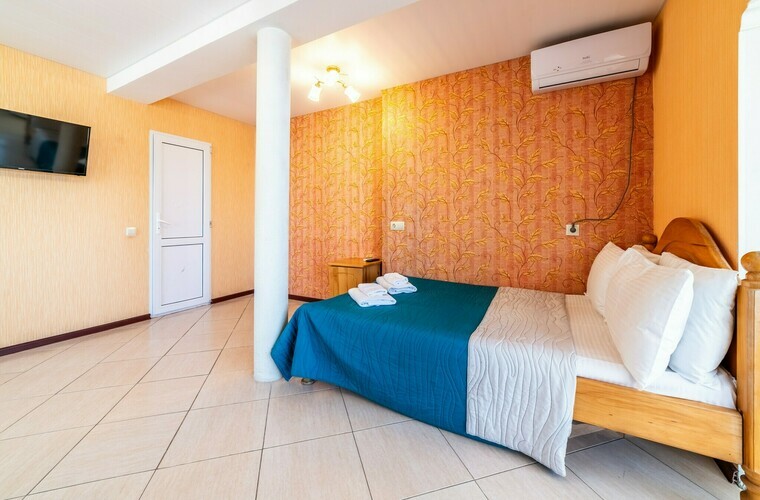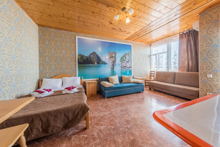 Наш двухкомнатный номер с террасой и кухней — это идеальное решение для тех, кто ценит домашний уют во время отпуска. Просторные комнаты, оформленные в современном стиле, предлагают все необходимые удобства, в том числе полноценную кухню для приготовления ваших любимых блюд. Наслаждайтесь свежим воздухом и живописными видами на террасе, создавая незабываемые моменты с близкими в комфортной и уютной обстановке!