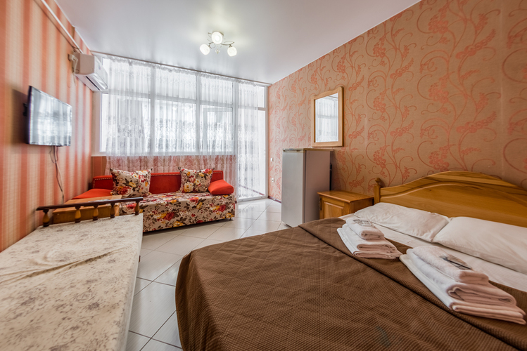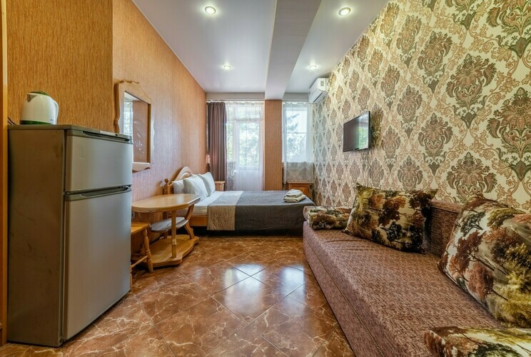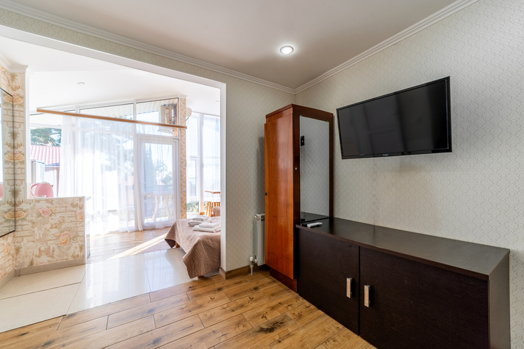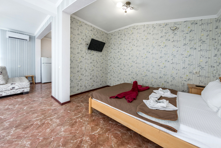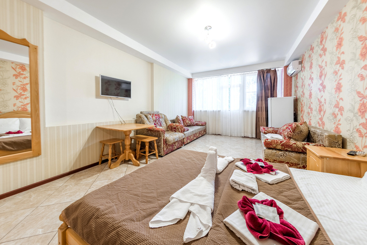 Наш двухкомнатный номер с балконом и мини-кухней идеально подойдет для семейного отдыха или дружеской компании, сочетая комфорт и функциональность. Уютный интерьер в светлых тонах создает атмосферу тепла, а наличие мини-кухни позволяет вам готовить свои любимые блюда на время отпуска. Наслаждайтесь чашечкой кофе на балконе, вдали от суеты, и создавайте незабываемые моменты в уютной атмосфере вашего собственного уголка!