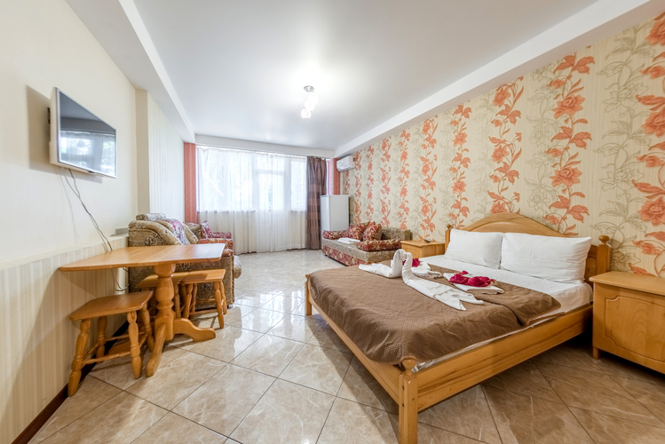 Наши апартаменты с балконом и кухней — это идеальное сочетание уюта и функциональности для вашего отдыха. Стильный интерьер, продуманные детали и возможности для самостоятельного приготовления пищи создают атмосферу домашнего тепла вдали от дома. Наслаждайтесь великолепными моментами на собственном балконе, где вы сможете устраивать романтические ужины под звездами или просто расслабляться, наслаждаясь свежим воздухом и прекрасным видом!