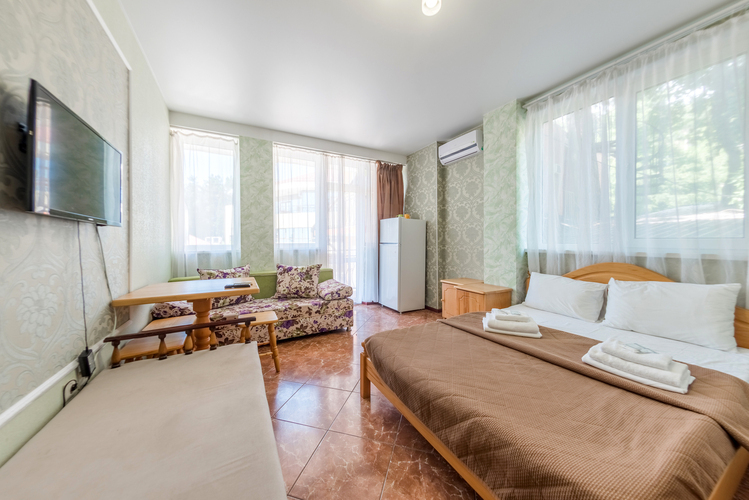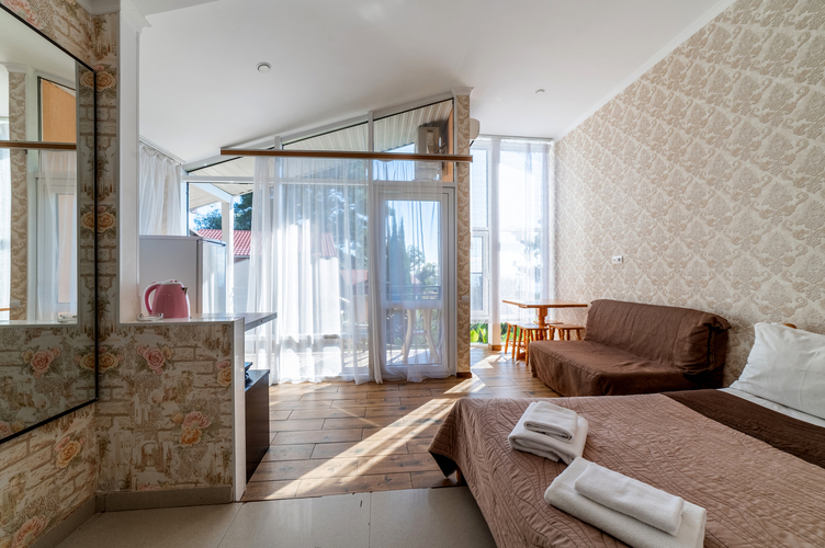 Добро пожаловать в наш уютный четырехместный номер с террасой! Здесь каждая деталь продумана для Вашего удобства и комфорта. Откройте двери на террасу , чтобы насладиться свежим воздухом и потрясающими видами - идеальное место для утреннего кофе или вечерних посиделок с близкими. Забронируйте сейчас и подарите себе незабываемый отдых в нашем номере!