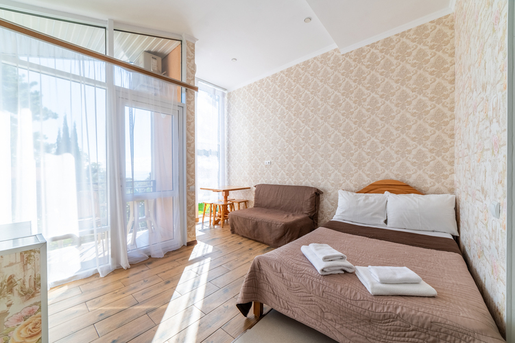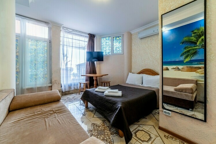 Добро пожаловать в наш уютный трехместный номер с балконом и эффектным видом на море! В этом стильном пространстве созданы все условия для вашего комфортного отдыха: мягкие кровати, современный интерьер и личный балкон, где вы сможете наслаждаться утренними рассветами и вечерними закатами. Позвольте себе окунуться в атмосферу расслабления и уюта, делая ваши воспоминания о поездке незабываемыми!