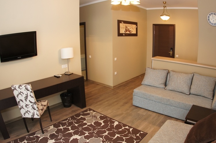 Номер расположен в шестиэтажном корпусе, построенном по европейскому стандарту. Двухкомнатный номер, рассчитанный на два основных места. В комнате предусмотрено наличие либо одной двуспальной, либо двух односпальных кроватей. Номер оборудован всем необходимым для комфортного отдыха.