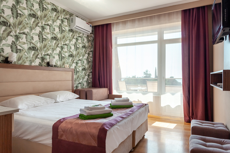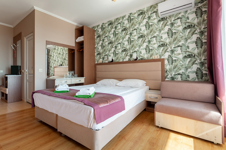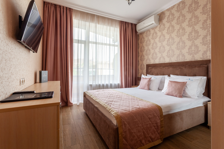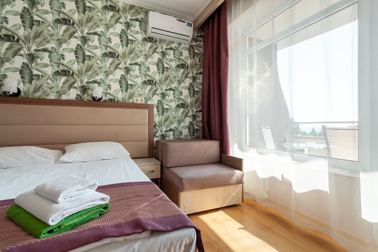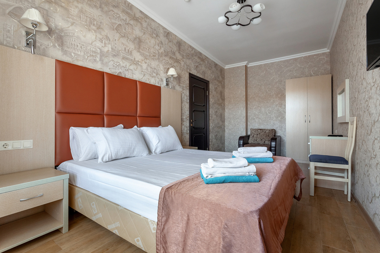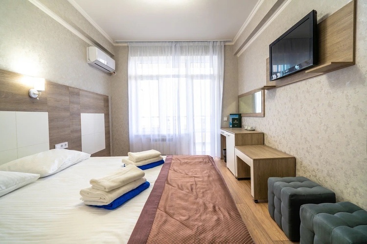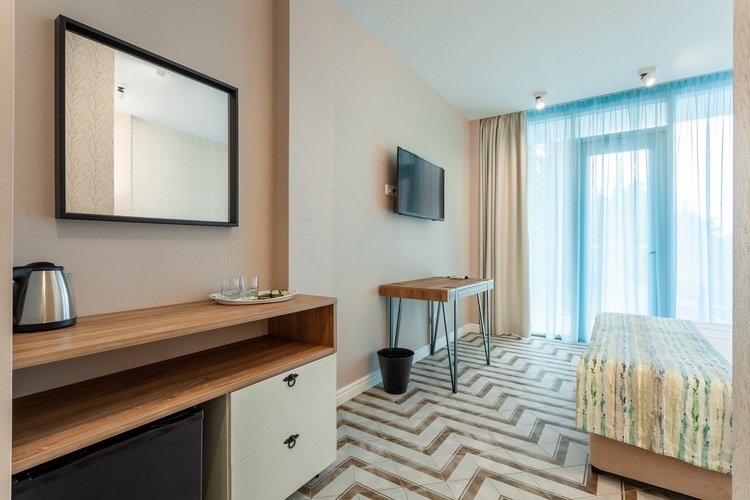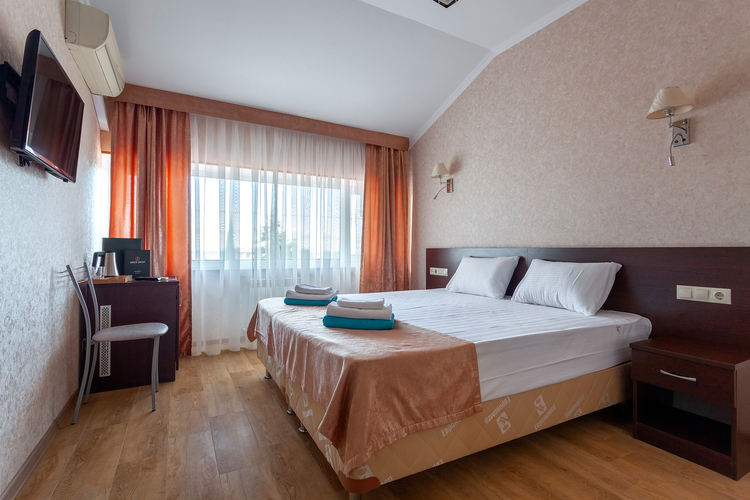 Однокомнатный номер, рассчитанный на два основных места. В комнате предусмотрено наличие либо одной двуспальной, либо двух односпальных кроватей. Имеется дополнительное место – кресло-кровать. Индивидуальный балкон. Номер оборудован всем необходимым для комфортного отдыха. Номера с видом на море и прогулочный парк.
