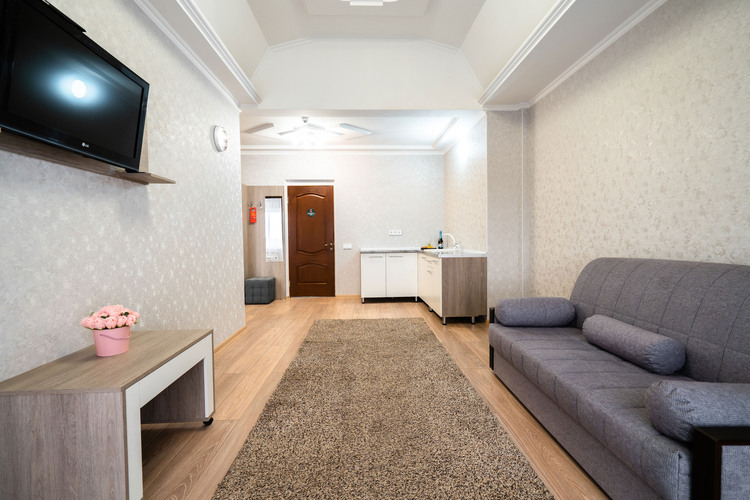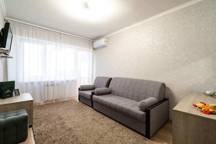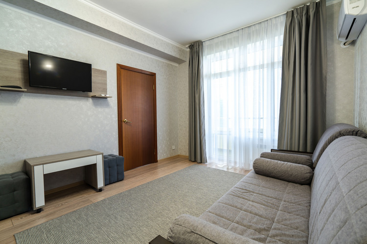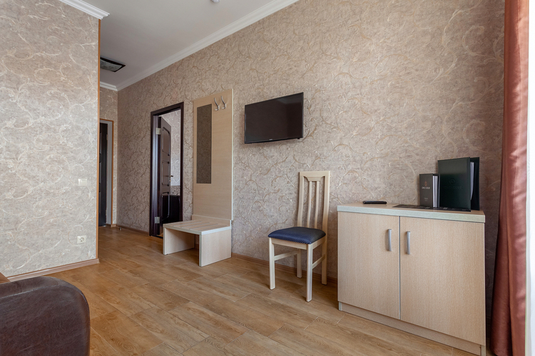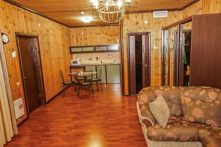 Двухкомнатный номер 30 кв.м., рассчитанный на 2 основных места. В номере предусмотрены 3 дополнительных места – диван- и кресло-кровать -оплачиваются отдельно, в зависимости от сезона и тарифа.