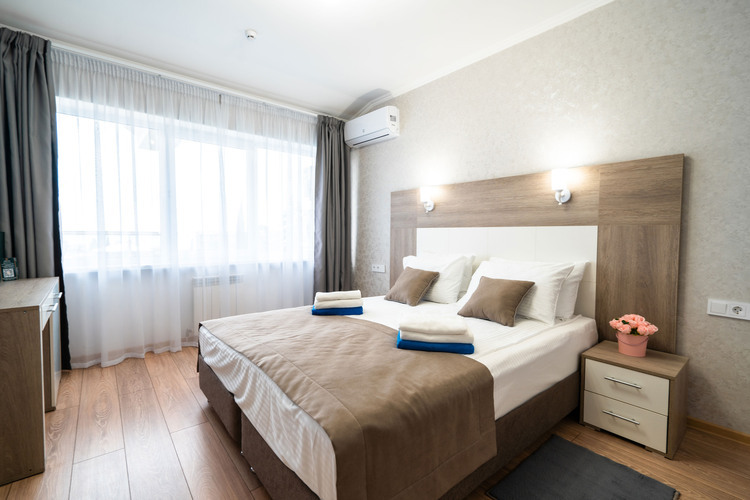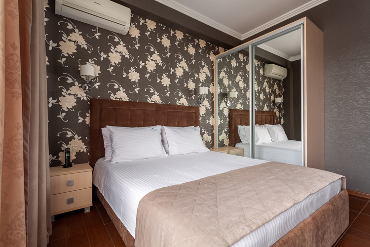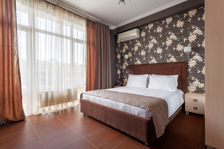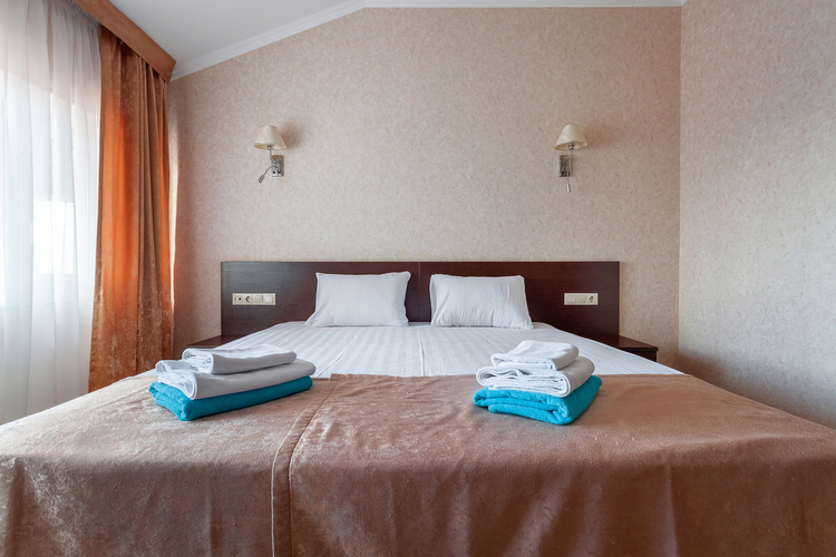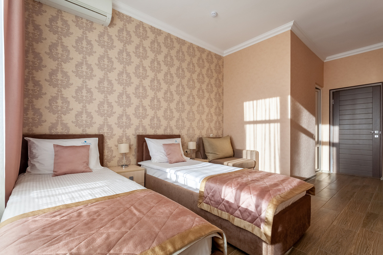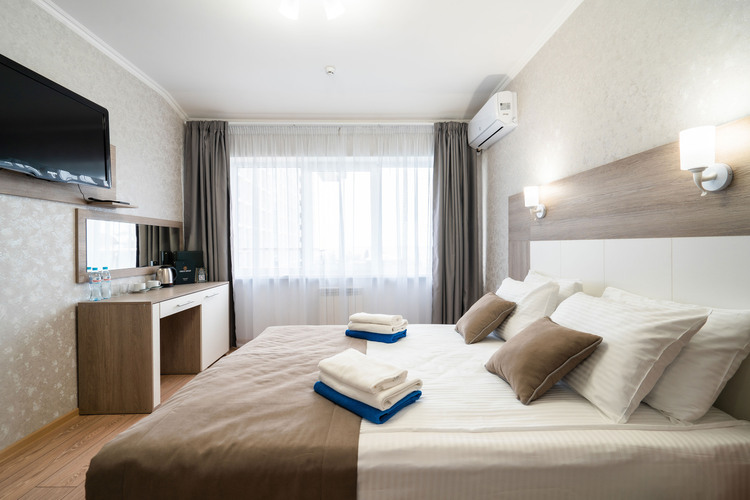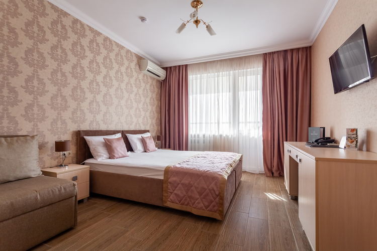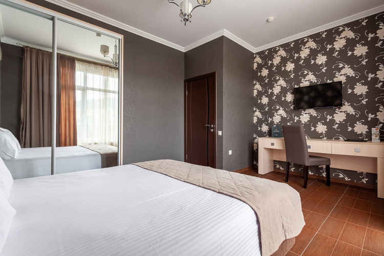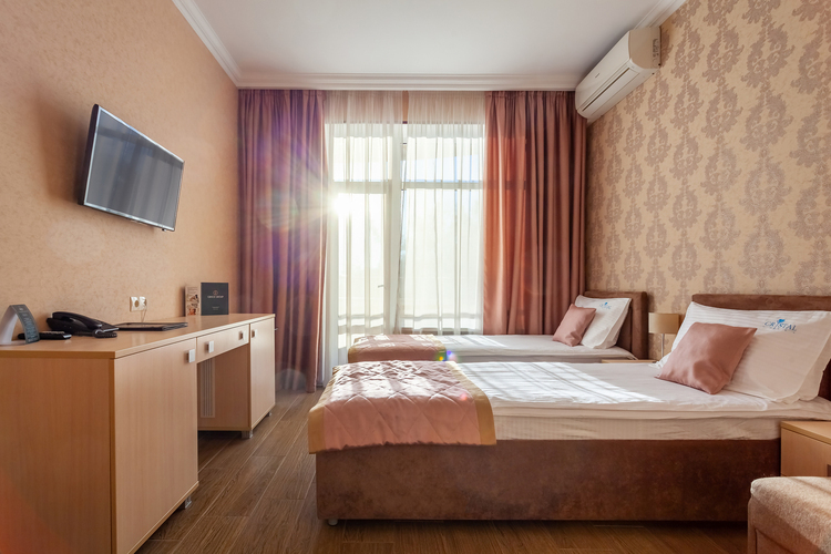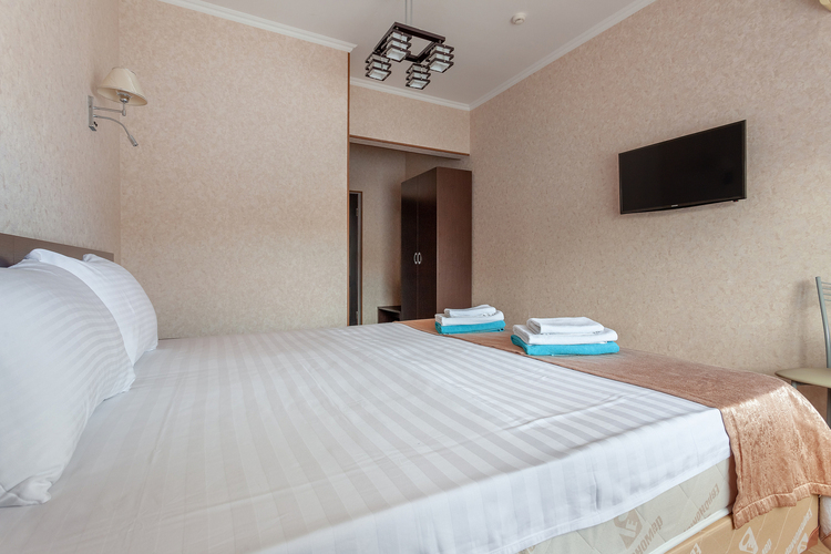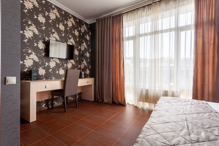 Номер расположен в шестиэтажном корпусе, построенном по европейскому стандарту. Однокомнатный номер, рассчитанный на два основных места. В комнате предусмотрено наличие либо одной двуспальной, либо двух односпальных кроватей. Номер оборудован всем необходимым для комфортного отдыха.