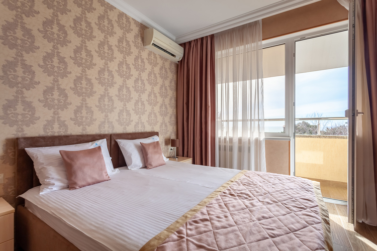 Просторный двухкомнатный номер высшей категории с гостиной, спальней и обеденным уголком. Респектабельность обстановки удовлетворит даже самых взыскательных гостей: TV плазма и кондиционер в каждой комнате, удобное зонирование (зона отдыха, обеденная зона), достойный интерьер, дополненный картинами и коврами, создающими атмосферу уюта. Номер Премиум выделятся наличием трех балконов, открывающих панорамный вид на море, горы и прогулочный парк Курортного городка