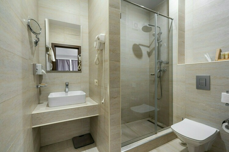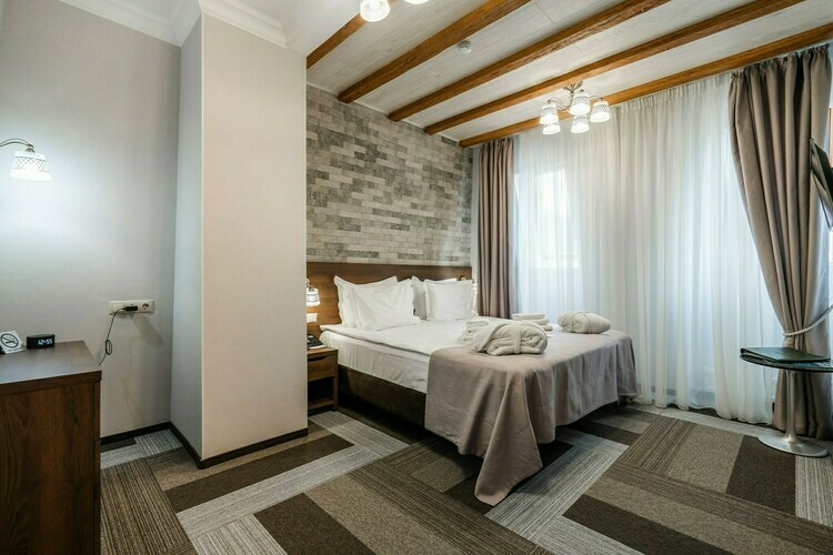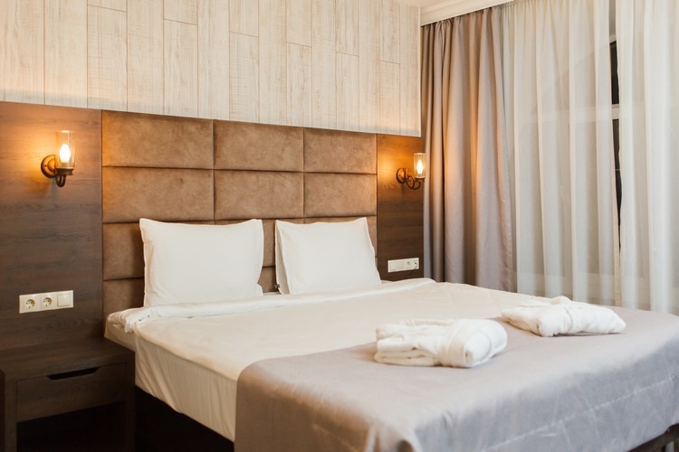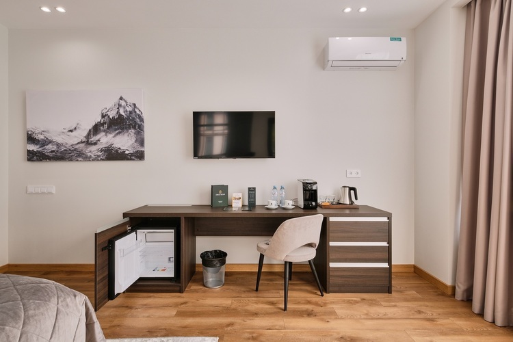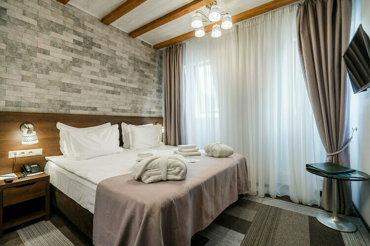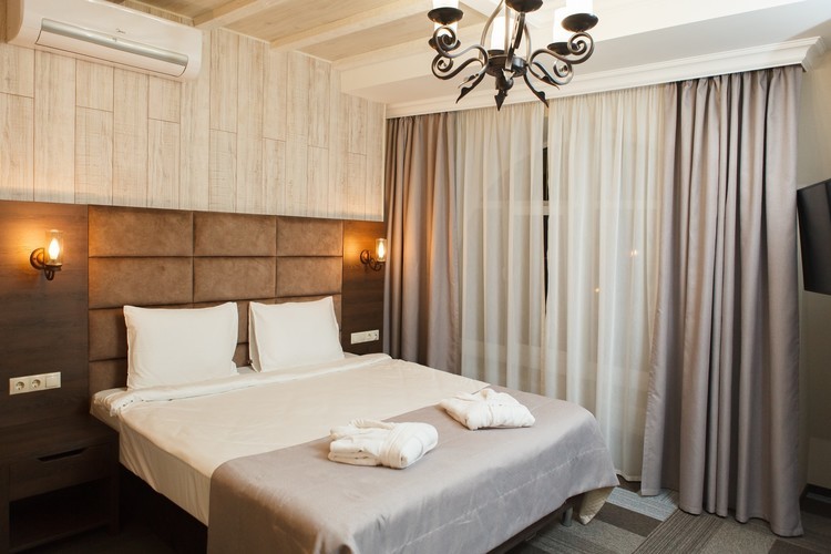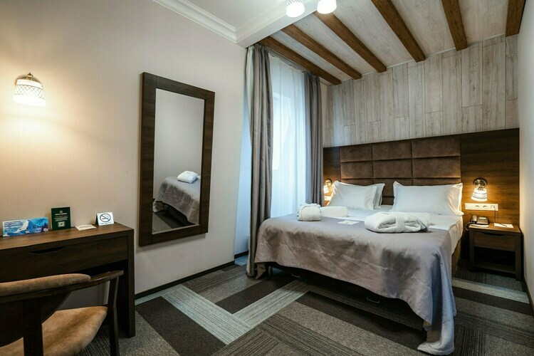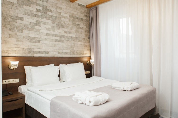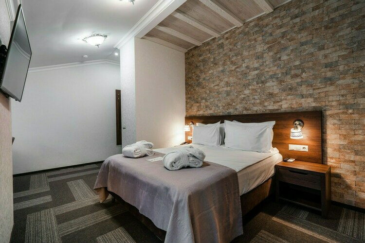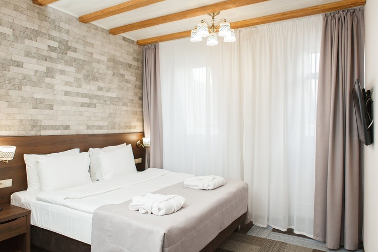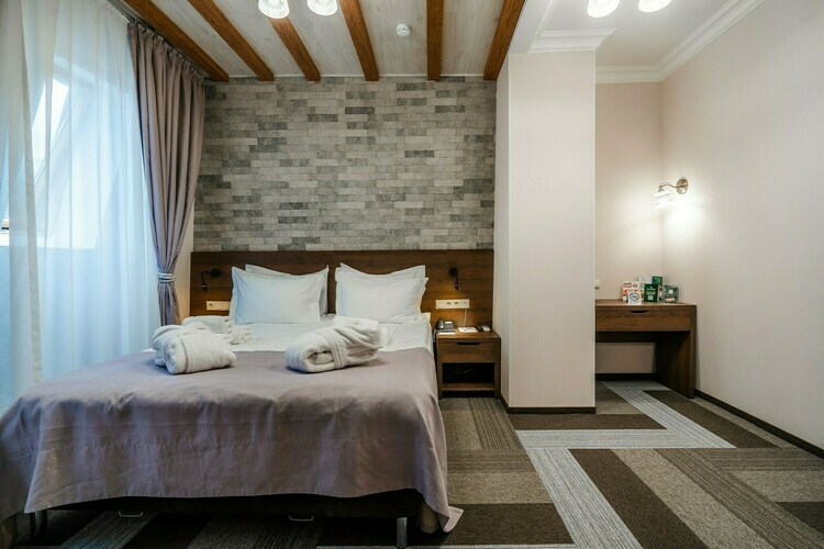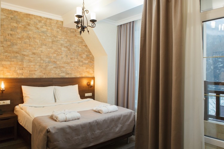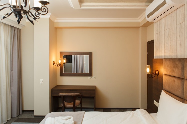 Уютный стильный однокомнатный номер, в котором каждый наш гость сможет расслабиться и почувствовать себя как дома. В номере 2 основных места (без доп.мест). Особенность номера в панорамном окне, вид из которого открывается на горы и внутренний двор отеля. В номере созданы все условия для комфортного проживания, предусмотрен кондиционер, холодильник, плазменный телевизор, утюг, гладильная доска, сейф. Индивидуальный санузел оборудован современной душевой кабиной.