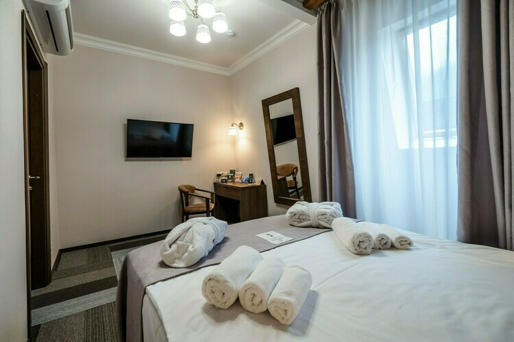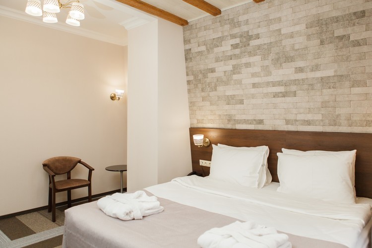 Уютный однокомнатный номер, в котором каждый наш гость сможет расслабиться и почувствовать себя как дома. В номере 2 основных места (без доп.мест). Отличительной особенностью номера является наличие балкона с видом на горы и внутренний двор. В номере созданы все условия для комфортного проживания, предусмотрен кондиционер, холодильник, плазменный телевизор, утюг, гладильная доска, сейф.