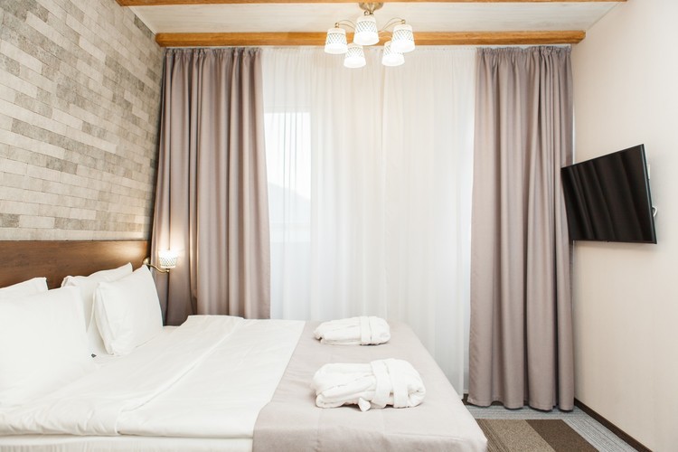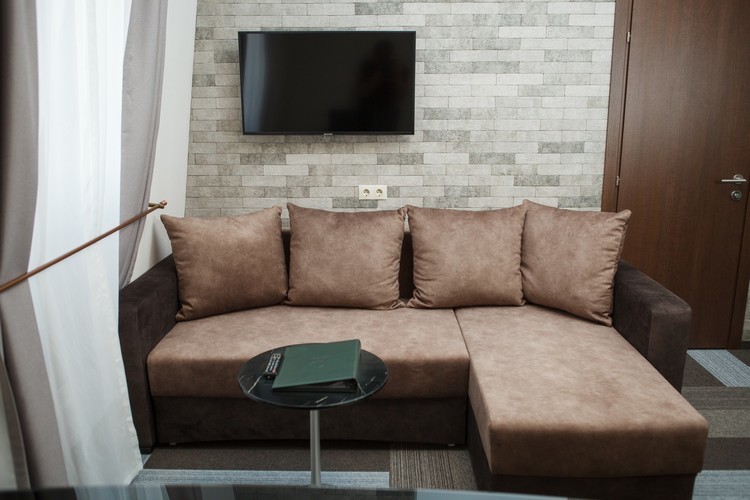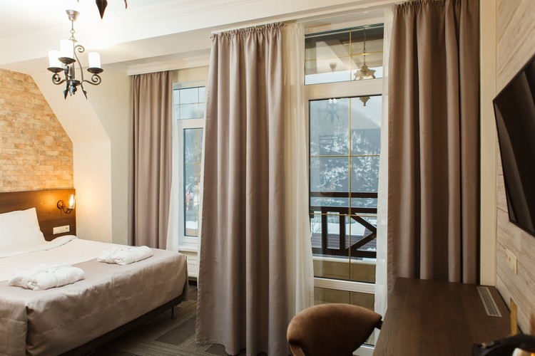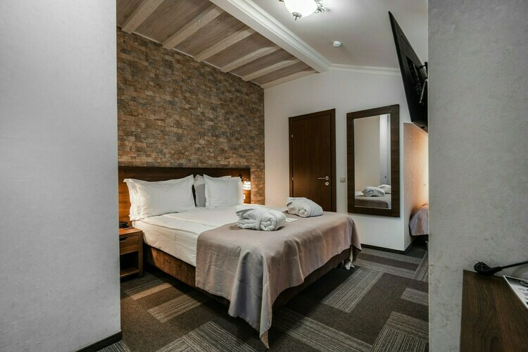 Улучшенный стандарт (корпус 1) – это однокомнатный номер со стильным интерьером, из окон которого можно любоваться красивейшим видом на горный пейзаж, даже не вставая с кровати, а на балконе –дышать свежим воздухом гор. В номере предусмотрена удобная двуспальная кровать, которая обеспечит Вам здоровый, крепкий сон, и два дополнительных спальных места. Мы создали все условия для комфортного отдыха в номере. Здесь Вы найдете плазменный телевизор, кондиционер, холодильник, сейф .