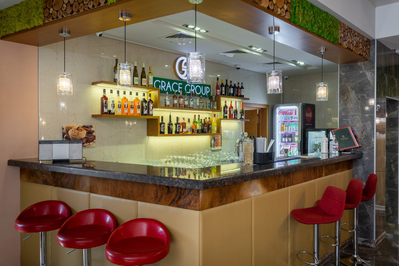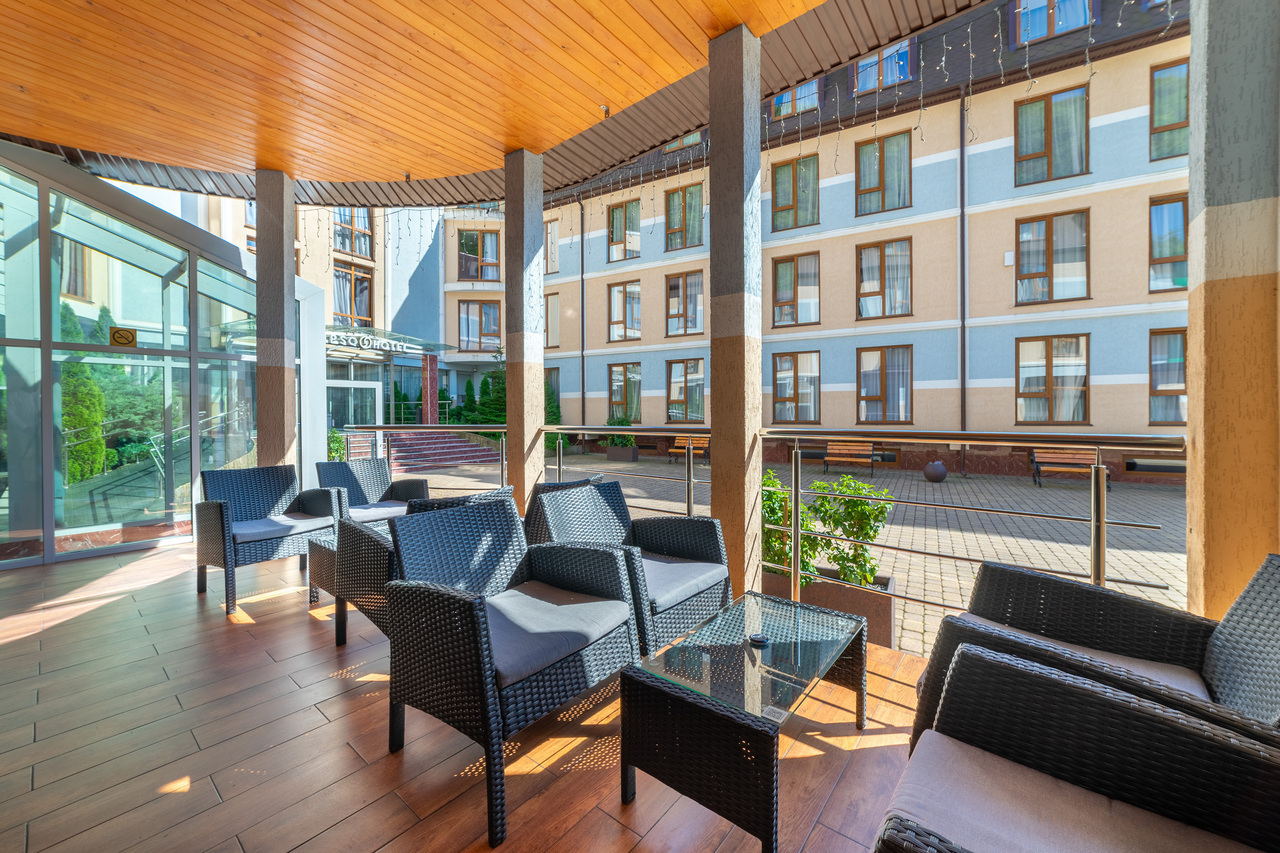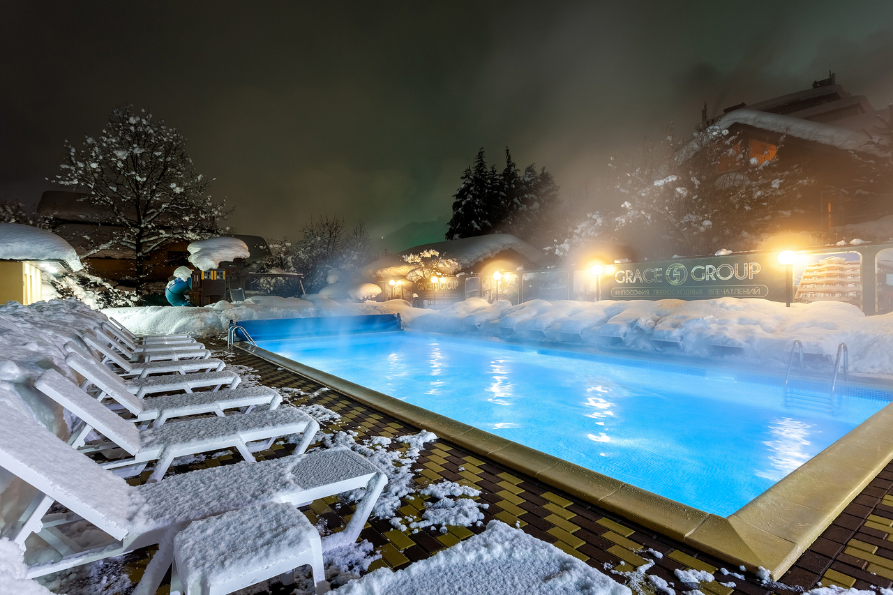 К услугам наших гостей Спа-комплекс с джакузи, финской сауной, хамам, открытый подогреваемый бассейн, спорт зал, детская игровая площадка, конференц зал, лобби-бар, камера хранения и прокат лыжного инвентаря, автопарковка.