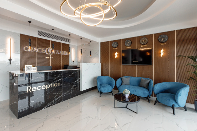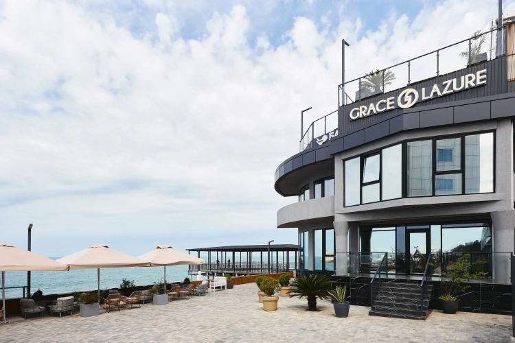 Отель «Грейс Лазурь» располагается в Адлере, на первой береговой линии рядом с морем. Днём гости могут посетить местные достопримечательности: Олимпийский парк находится в 8 км, морской вокзал Сочи в 25 км, до сочинского океанариума и дельфинария — 4 км, до дендропарка южной культуры — 6 км, до скайпарка — 19 км, до торгового центра — 4 км.