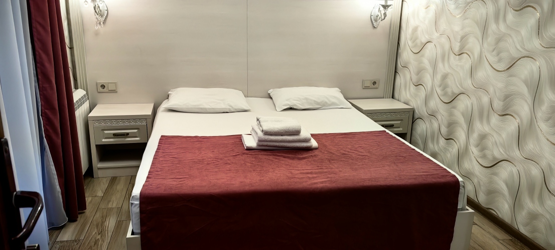 Номер уютно обставлен и оснащён необходимым, чтобы отдохнуть после долгого и насыщенного дня. Имеются телевизор и халат. Оснащение зависит от выбранной категории номера.