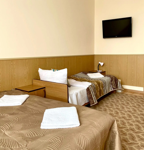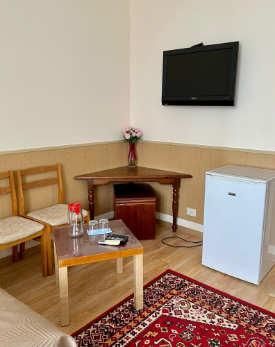 Номер уютно обставлен и оснащён необходимым, чтобы отдохнуть после долгого и насыщенного дня. Имеются телевизор. Перечисленные услуги есть не во всех номерах.