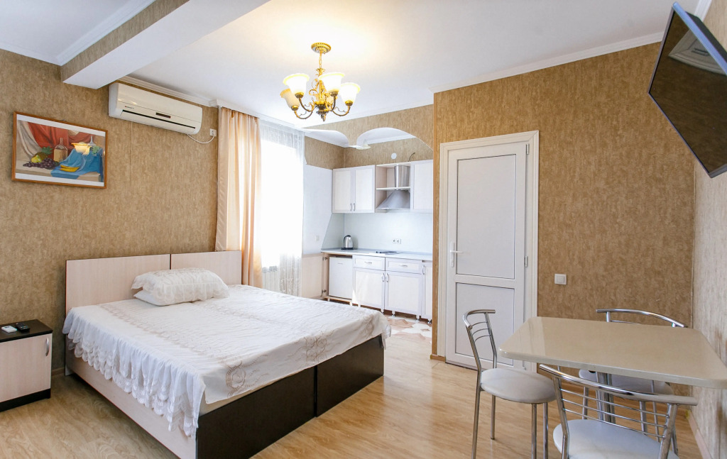 Чтобы вы могли отдохнуть после долгого дня, в номере есть DVD-плеер, телевизор и мини-бар. Оснащение зависит от выбранной категории номера.