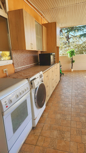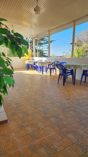 На территории дома есть собственная кондитерская, где гостям предлагаются разнообразные десерты. Также имеется общая кухня и веранда с обеденными столами.