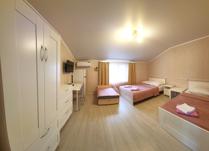 Номера в гостевом доме оснащены кондиционерами, мебелью и холодильниками.