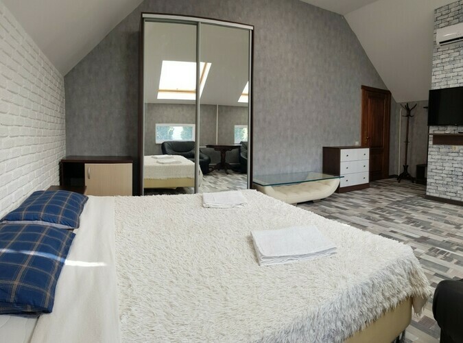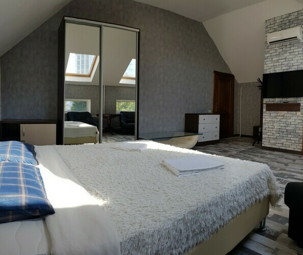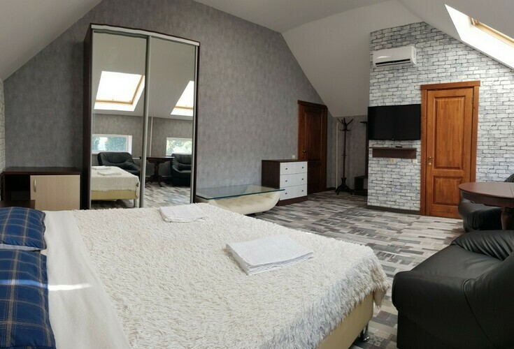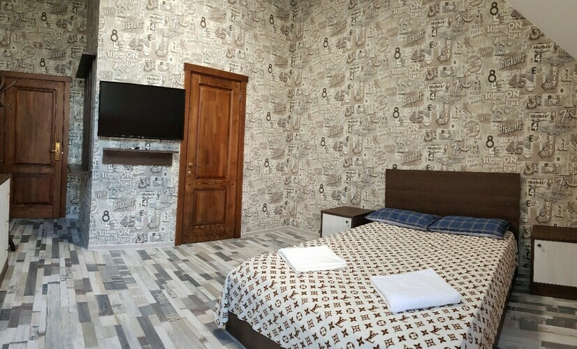 Люкс 2-х местный, возможно + 1 доп. места.Уютные номера площадью 31 кв.м. Идеально подходит как для двухместного, так и для семейного размещения. Имеет уютную спальню. В номере: 1 двуспальная кровать, шкаф с вешалками; чайник, холодильник; кондиционер, центральное отопление, сейф, москитная сетка; ванная комната с душем и туалетом. сушилка для белья, тапочки. фен, ванные принадлежности. Телевизор с плоским экраном, TV через интернет. В стоимость входит: постельное бельё, полотенца; WI-Fi бесплат