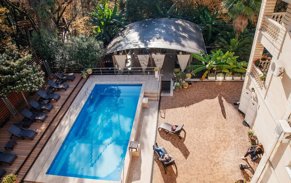 Отель ROMANOVPALM Hotel, адрес на карте Сочи, Курортный проспект, д. 94Б, с характеристиками номеров и возможностью онлайн бронирования на площадке vashotel.ru , стоимость проживания и удобства.