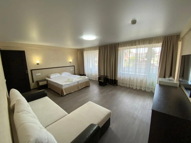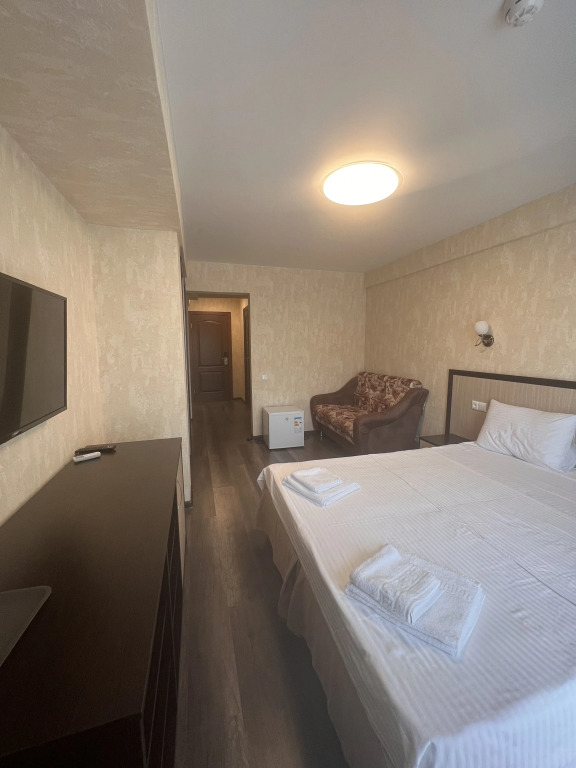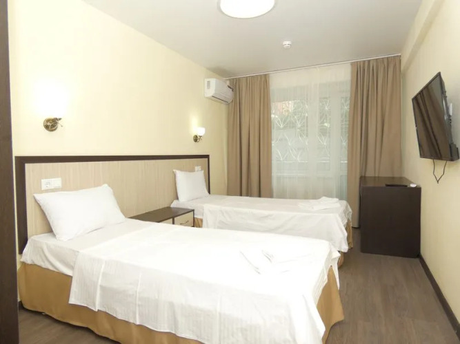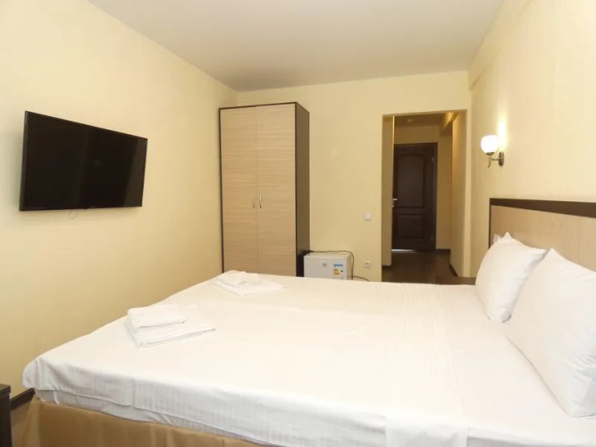 Номер уютно обставлен и оснащён необходимым, чтобы отдохнуть после долгого и насыщенного дня. Имеются телевизор. Перечисленные услуги есть не во всех номерах.