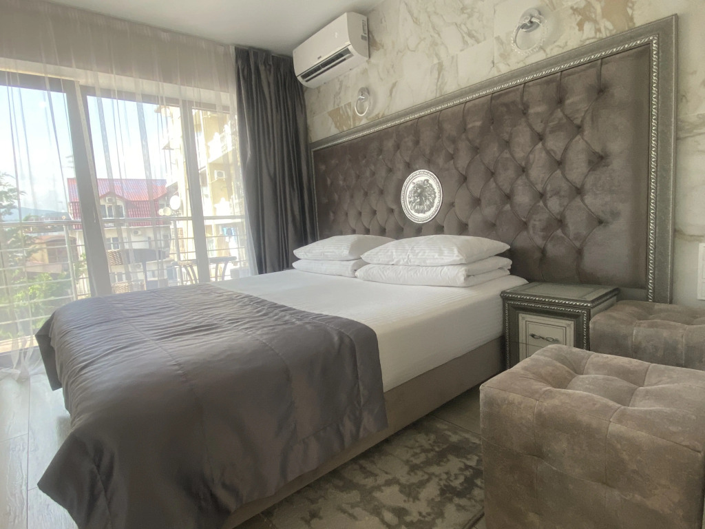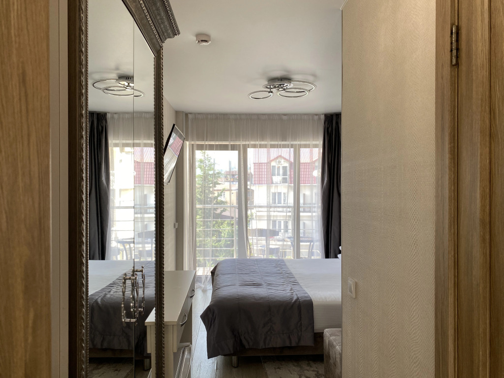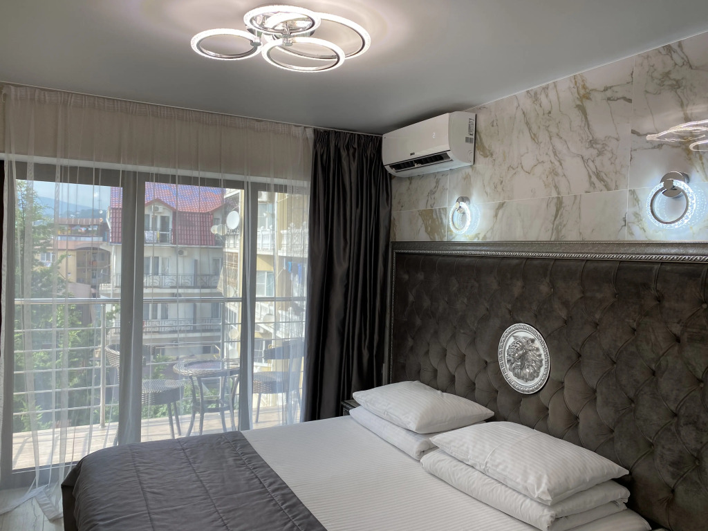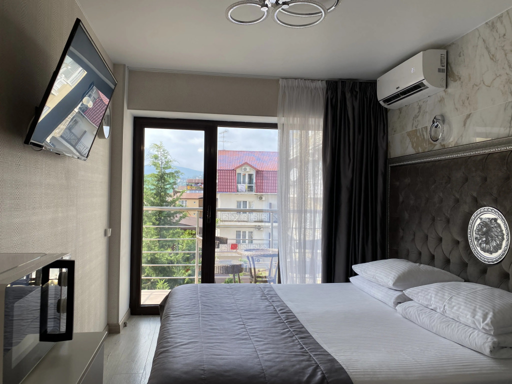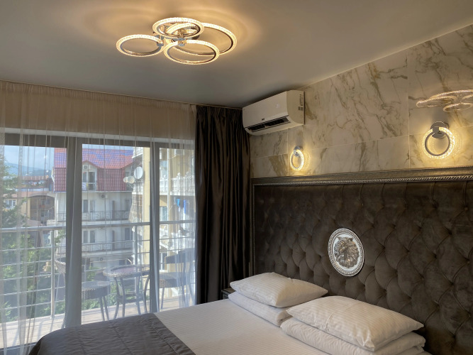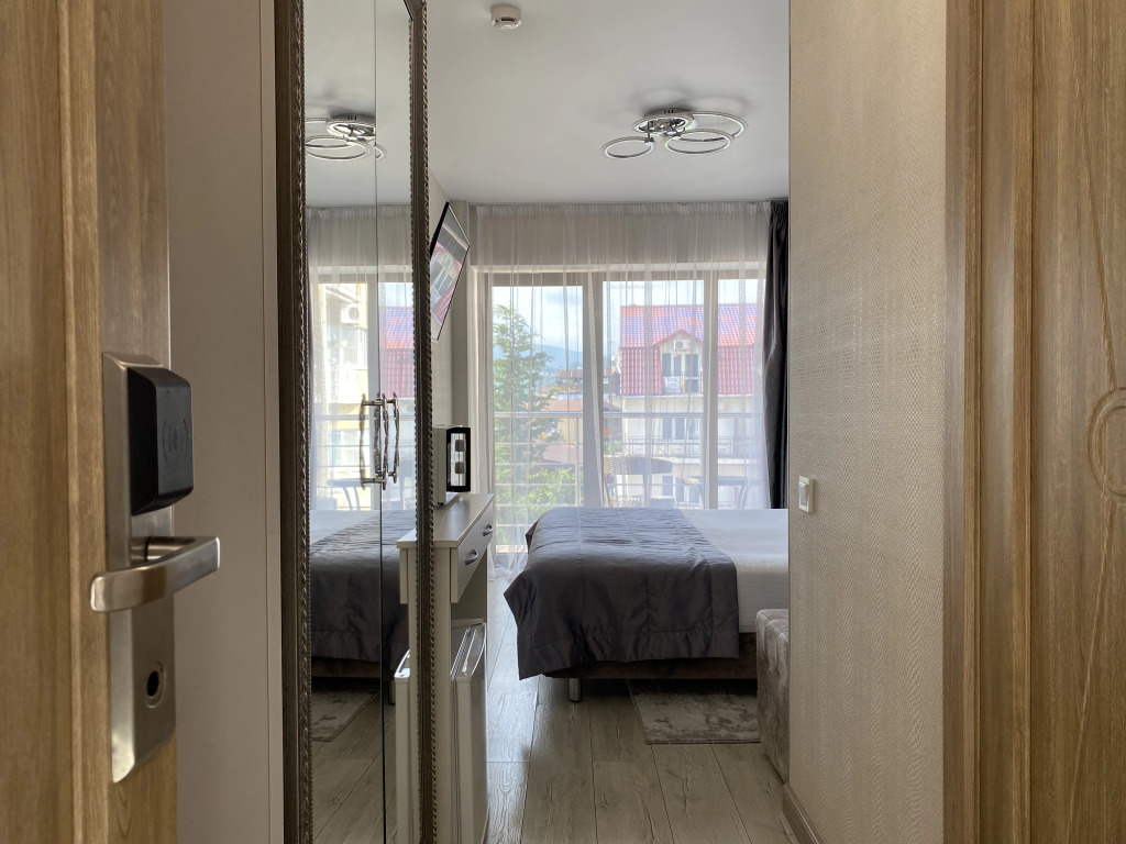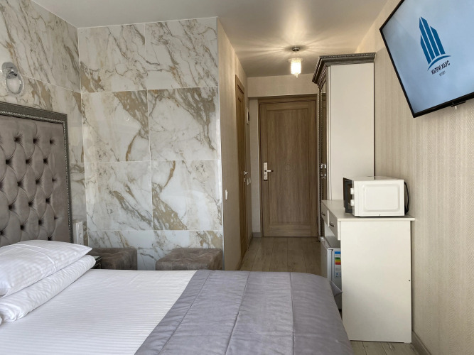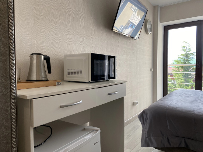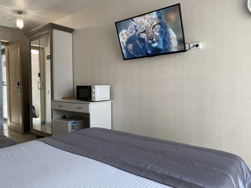 В номере вы найдёте телевизор и халат. Оснащение зависит от выбранной категории номера.