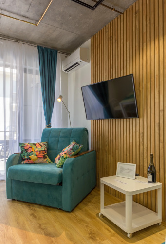 Номер уютно обставлен и оснащён необходимым, чтобы отдохнуть после долгого и насыщенного дня. Имеются телевизор. Оснащение зависит от выбранной категории номера.