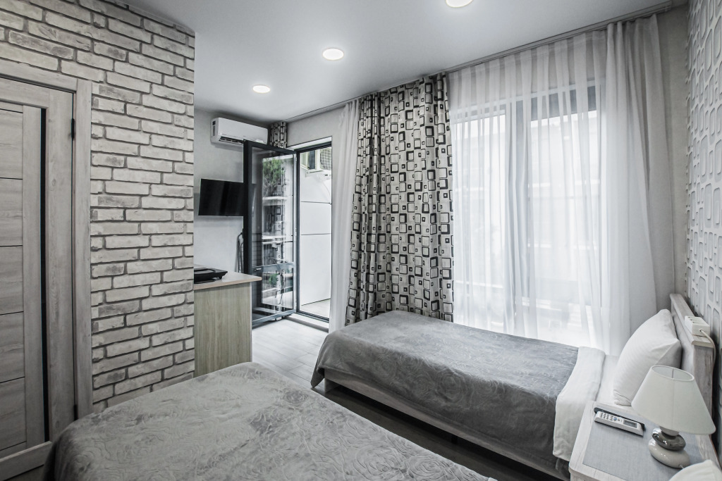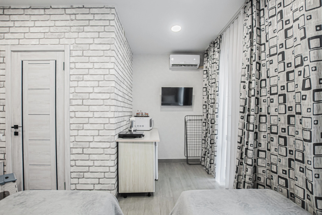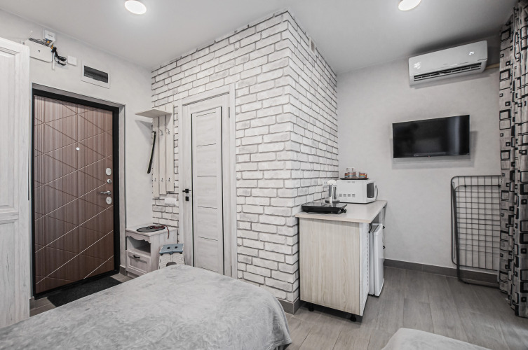 Номер уютно обставлен и оснащён необходимым, чтобы отдохнуть после долгого и насыщенного дня. Имеются телевизор. Оснащение зависит от выбранной категории номера.