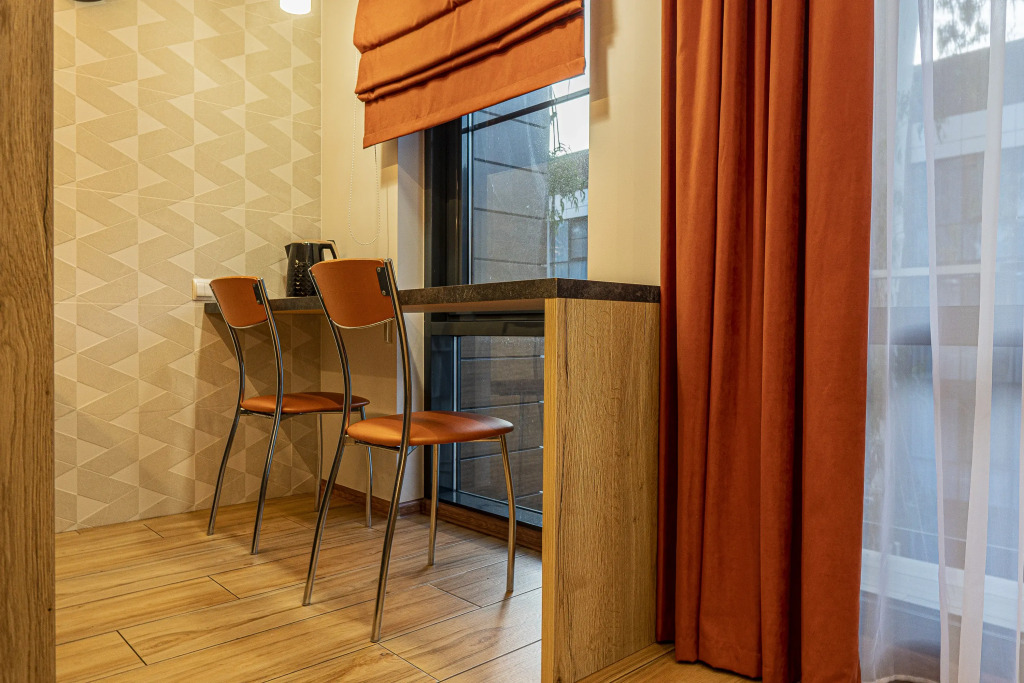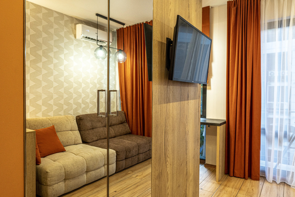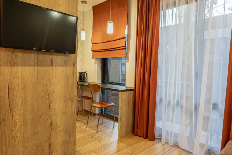 Номер уютно обставлен и оснащён необходимым, чтобы отдохнуть после долгого и насыщенного дня. Имеются телевизор. Оснащение зависит от выбранной категории номера.