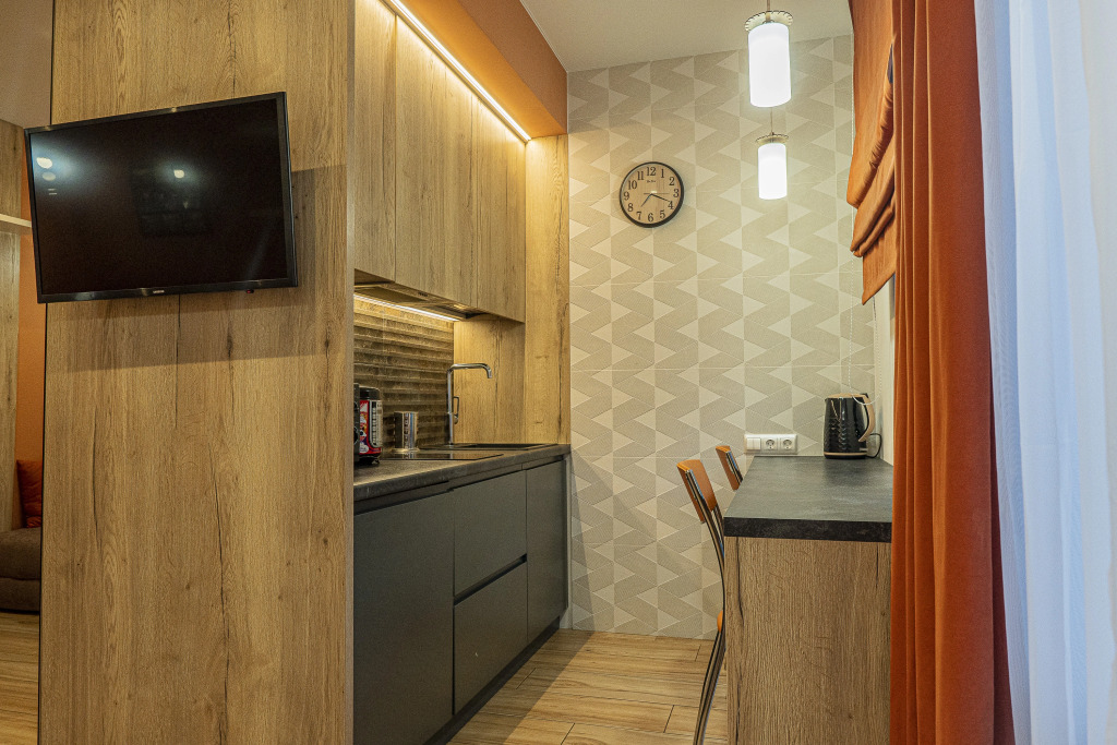 Сотрудники апартаментов поддержат беседу на английском и русском.