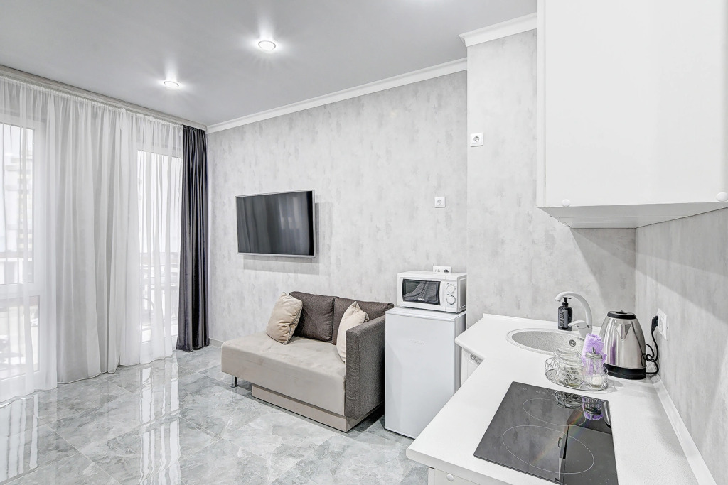 Сотрудники апартаментов поддержат беседу на английском и русском.