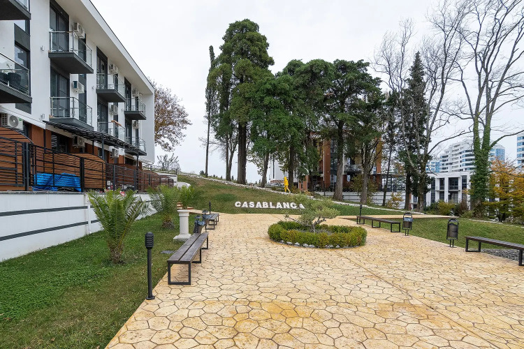 Апартаменты «Касабланка» находятся в Сочи. Расстояние до пляжа и Чёрного моря может разниться. Жилой комплекс «Касабланка» находится на второй линии, фактическое пешее расстояние до моря составляет 1.5 км.