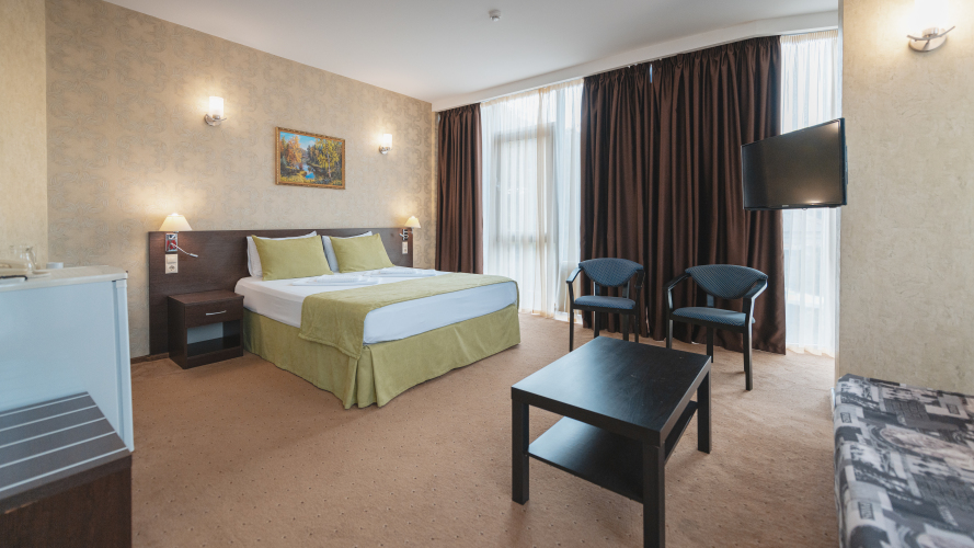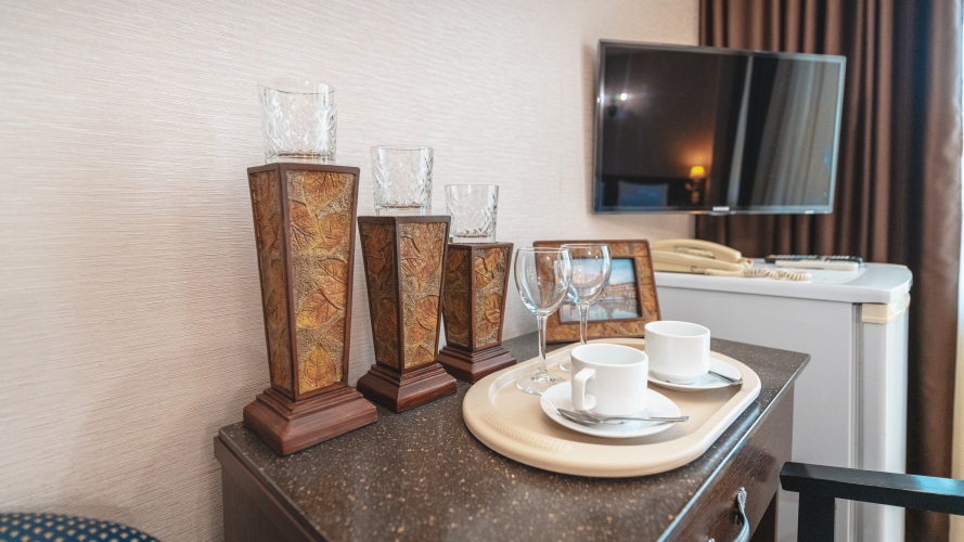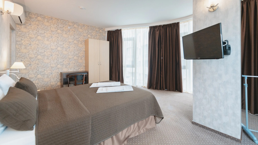 Чтобы вы могли отдохнуть после долгого дня, в номере есть телевизор и халат. Перечисленные услуги есть не во всех номерах.