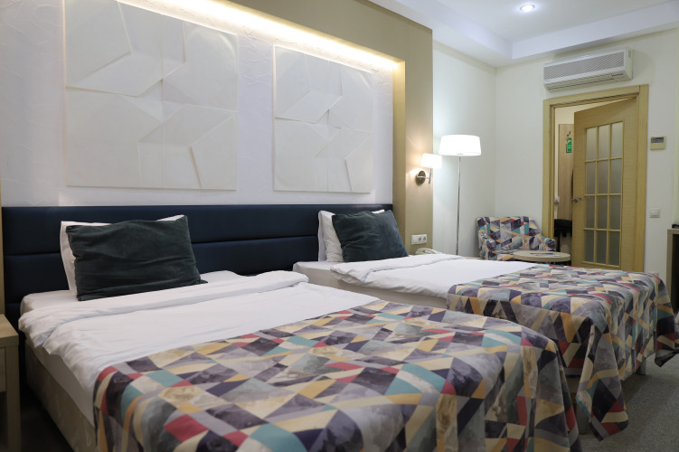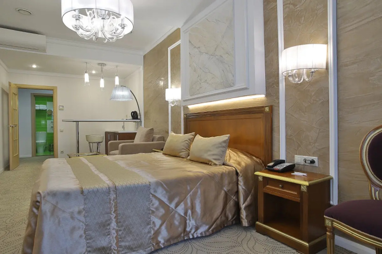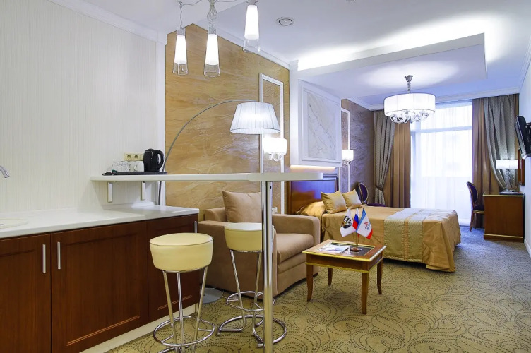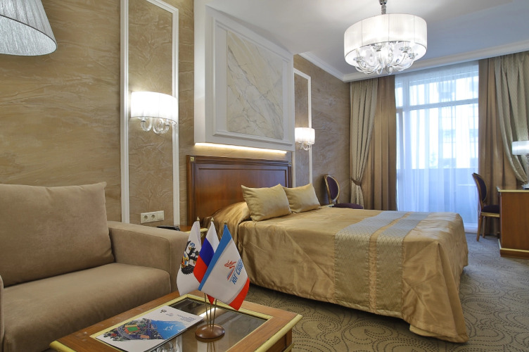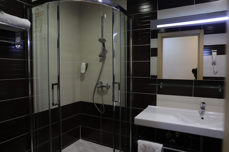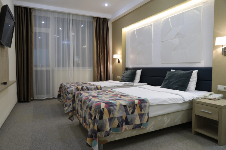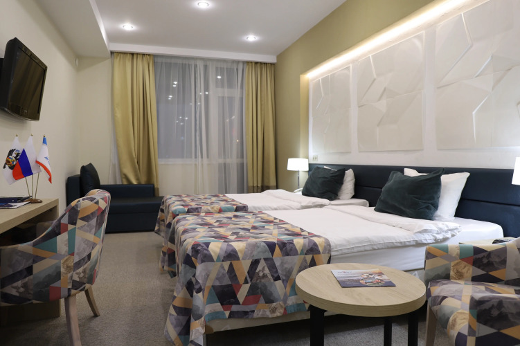 В номере гостей ждут телевизор и халат. Оснащение зависит от выбранной категории номера.