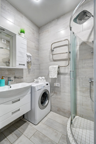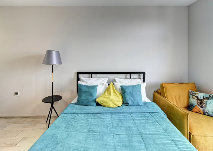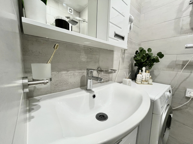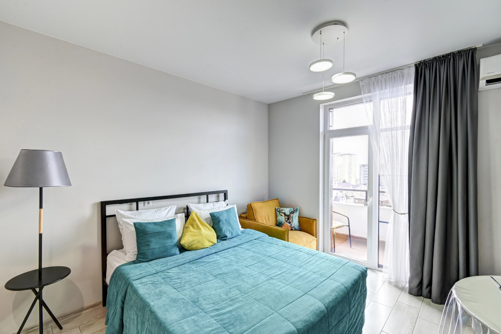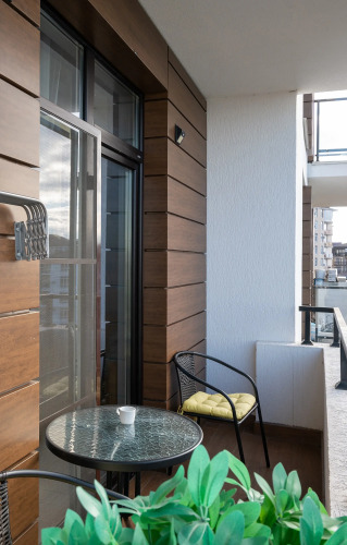 В квартире есть балкон, откуда открывается вид на море и горы. В распоряжении гостей фен, гладильная доска, утюг, стиральная машина, микроволновая печь, плита, посуда, сплит-система и сушилка.