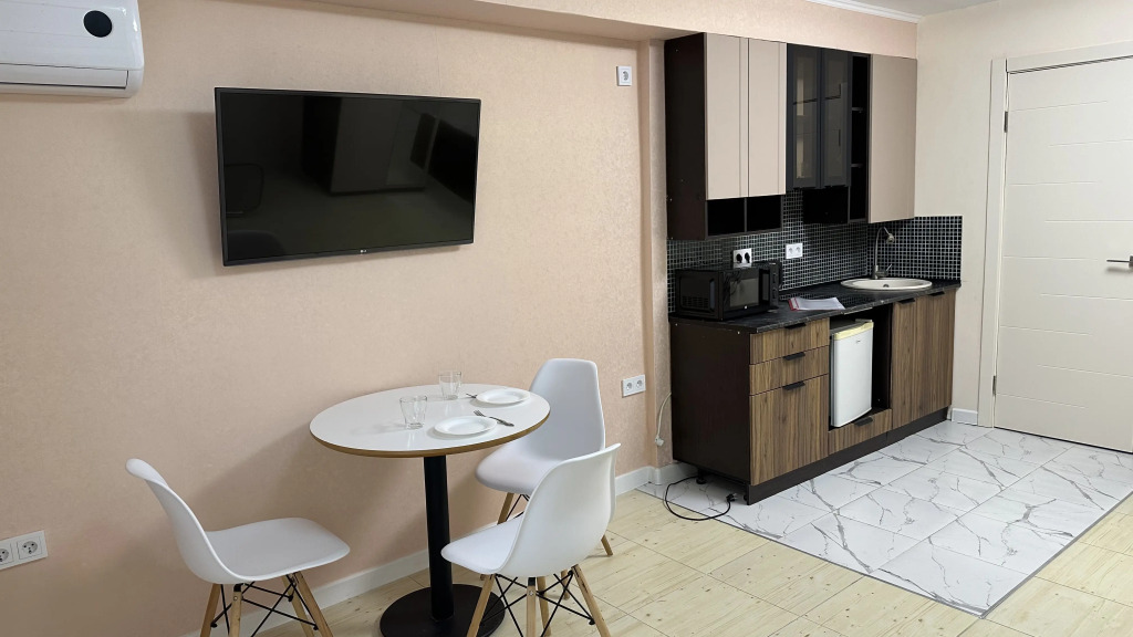 Подходящий вариант для большой компании: апартаменты «Квартира Квартира-студия в Хосте» находятся в Сочи. Эти апартаменты расположены в 14 км от центра города. Рядом с апартаментами — Пляж Центральный, Пляж санатория «Хоста» и Смотровая башня горы Ахун.