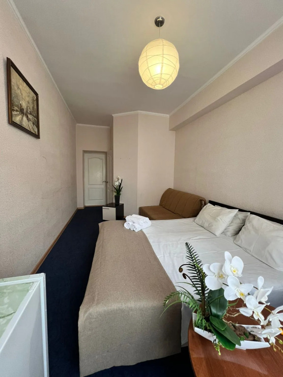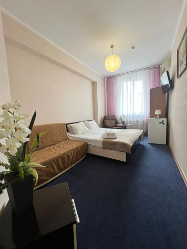 Номер уютно обставлен и оснащён необходимым, чтобы отдохнуть после долгого и насыщенного дня. Имеются телевизор. Оснащение зависит от выбранной категории номера.