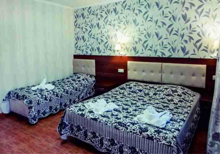 В номере вас будут ждать телевизор и халат. Оснащение зависит от выбранной категории номера.