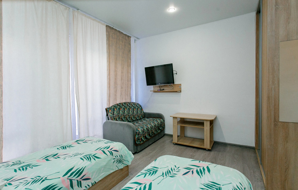 В номере вы найдёте телевизор. Оснащение зависит от выбранной категории номера.