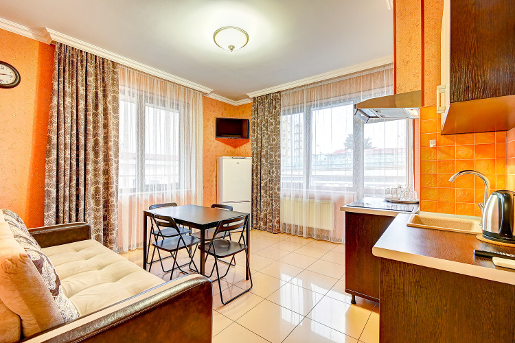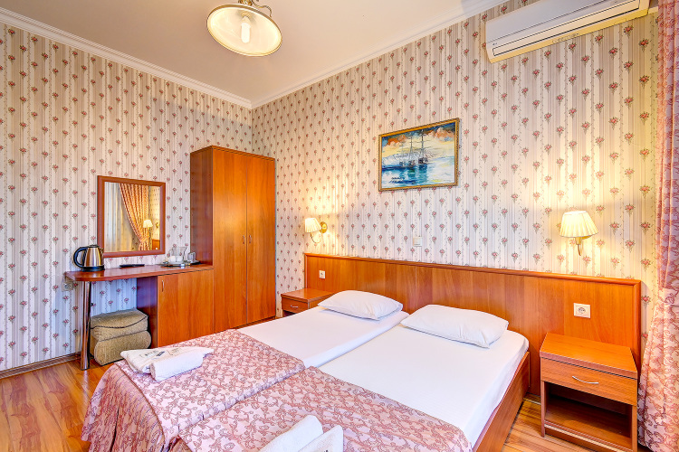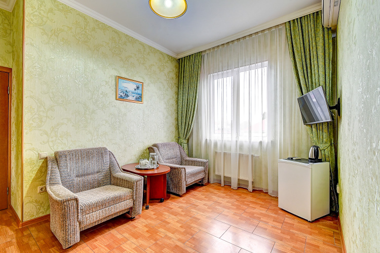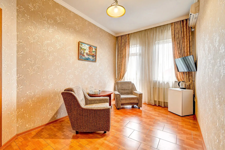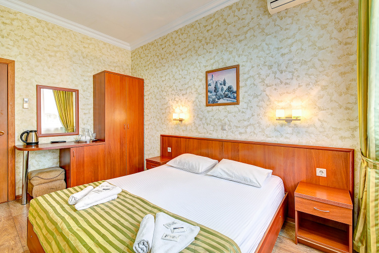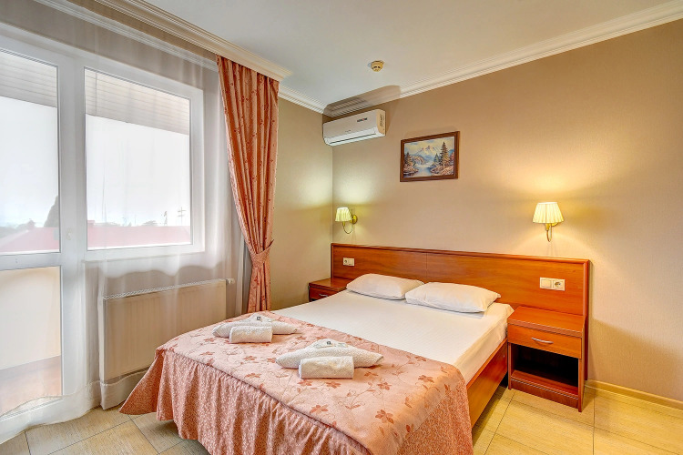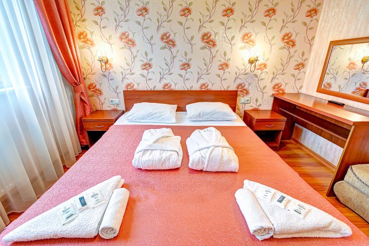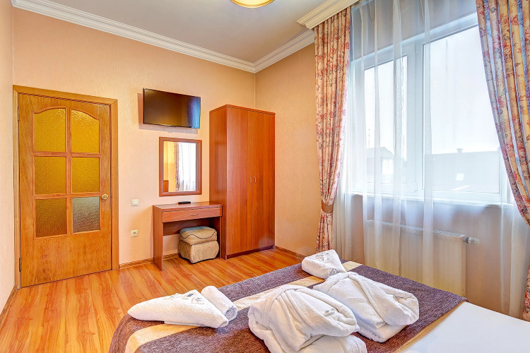 В номере вас будут ждать телевизор и халат. Оснащение зависит от выбранной категории номера.