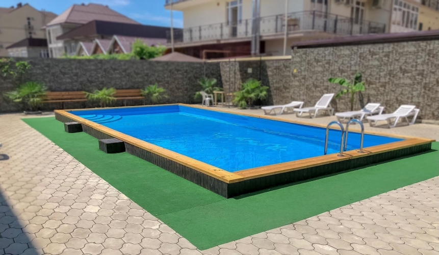 Общая кухня оборудована для самостоятельного приготовления пищи. Если вы путешествуете на машине, припарковаться можно будет на парковке рядом. Здесь будем баловать себя водными процедурами: есть открытый бассейн.