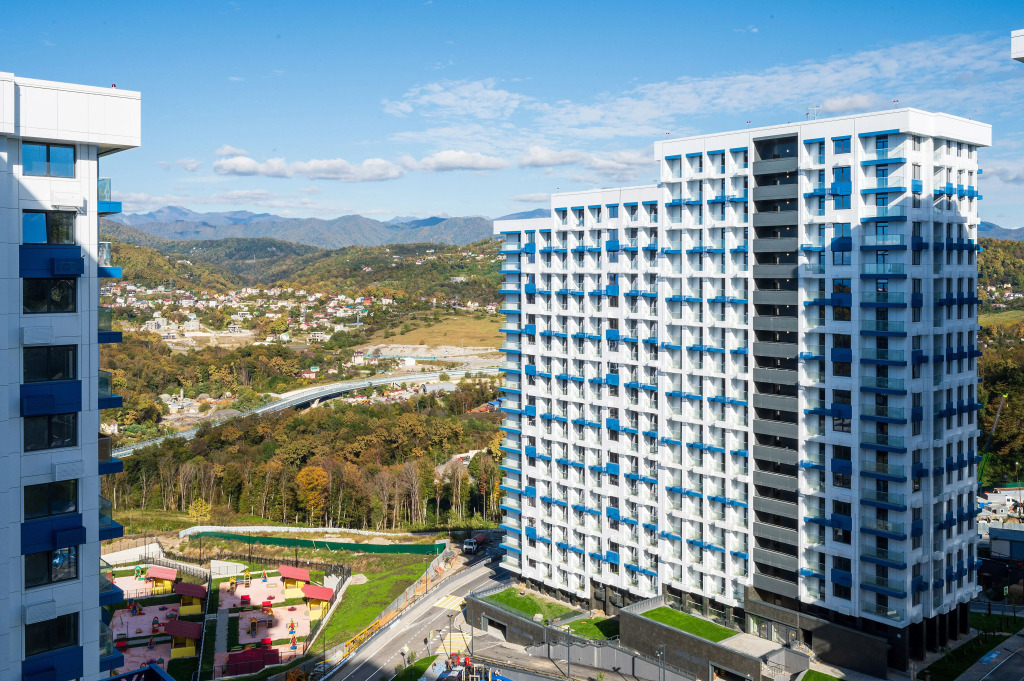 Апартаменты Лотос УК Атмосфера с Видом на Горы, адрес на карте Сочи, улица Ясногорская, д. 16/2, корп. 4, с описанием номеров и доступностью онлайн бронирования на ресурсе ВашОтель.RU , цены проживания и удобства.