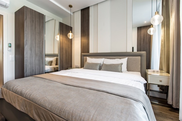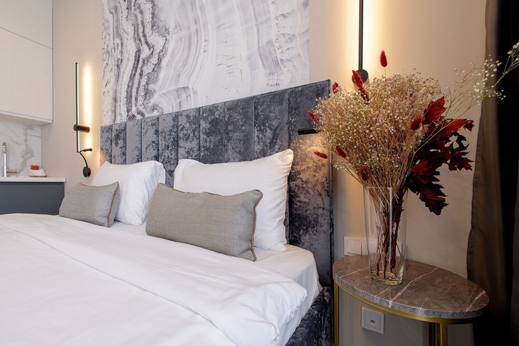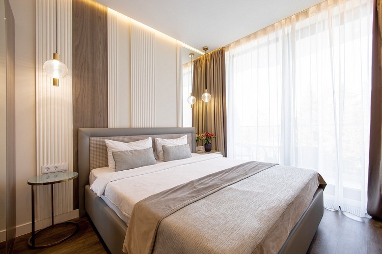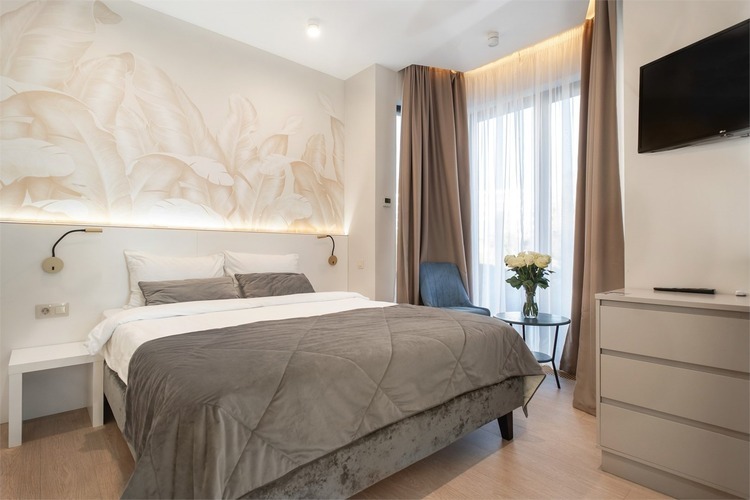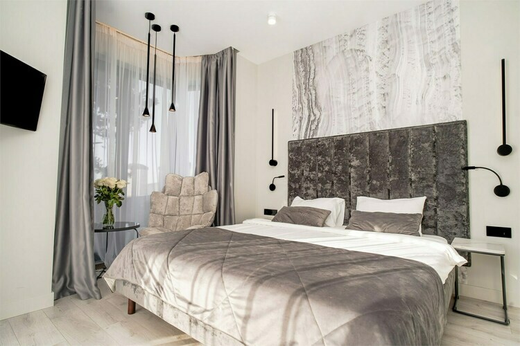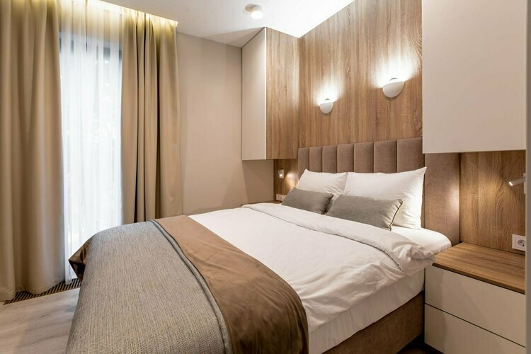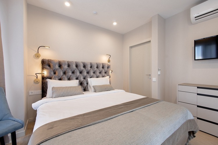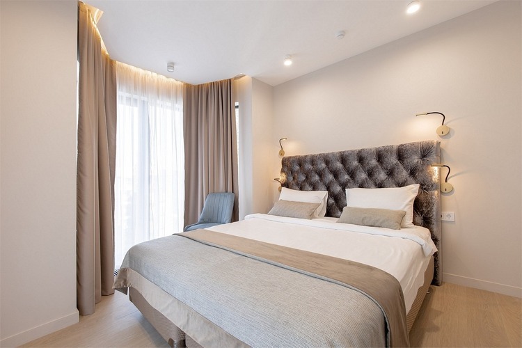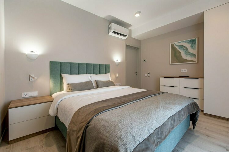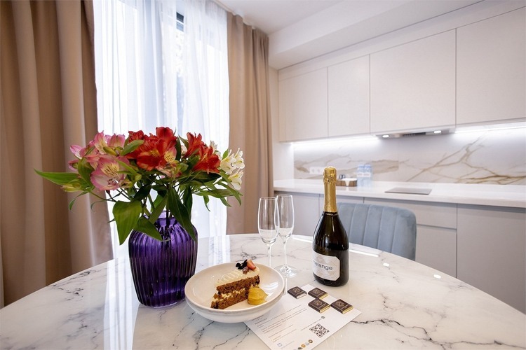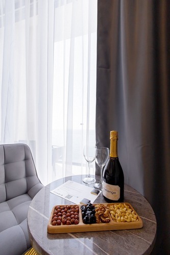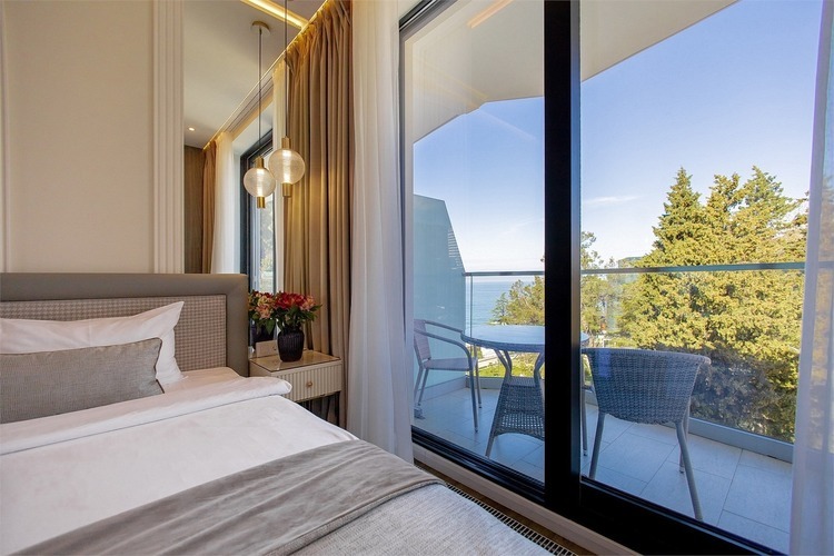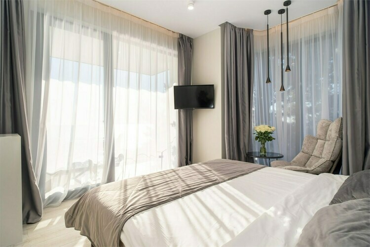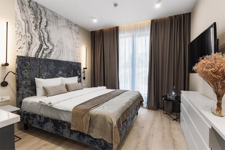 Двухкомнатные стильные апартаменты категории Делюкс, площадью 50 м2, идеально подходят для семейного размещения или отдыха повышенной комфортности. Панорамные окна и балкон, с которого открывается вид на море, создают неповторимую атмосферу и дают в полной мере насладиться отдыхом на побережье. Апартаменты оборудованы мини-кухней, бытовой техникой, комплектом посуды, чайным набором. К услугам гостей халаты, тапочки, пляжные полотенца, набор гигиенических принадлежностей