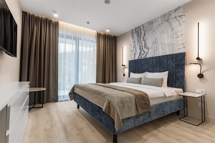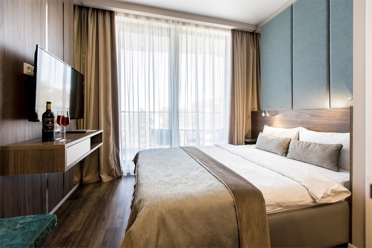 Современные однокомнатные номера в новых корпусах №2 и №3. Из окон в пол открывается вид на новый инфинити-бассейн*. Некоторые номера данной категории располагают балконом. Максимальное размещение в номере - 2 взрослых или 2 взрослых и ребенок до 7 лет, без предоставления отдельного спального места. Дополнительное спальное место в номере не предусмотрено. Для детей до 3-х лет возможно предоставление детской кроватки. В номере одна кровать «Queen size» 160 см*200 см.