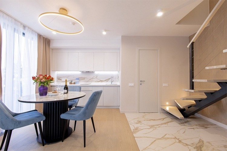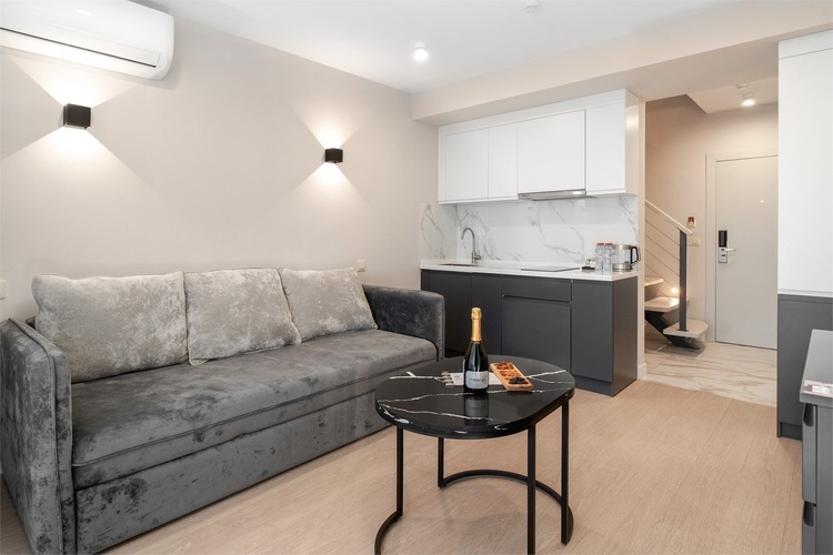 Дуплекс в новых корпусах отеля - номера площадью 50 кв.м., которые идеально подходят для комфортного проживания семей или друзей. Номера состоят из двух уровней, где на первом этаже расположена гостиная зона с раскладным двухместным диваном, мини-кухней и и обеденной зоной. На втором уровне находится спальня с комфортной кроватью, где вы сможете насладиться спокойным и уютным сном. Максимальное размещение в номере - 4 взрослых или 4 взрослых и ребенок до 7 лет, без предоставления спального места